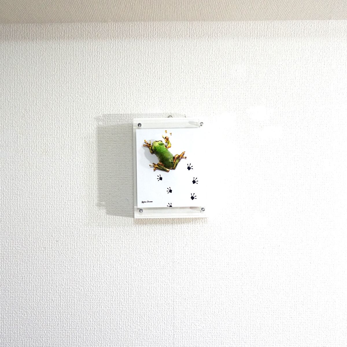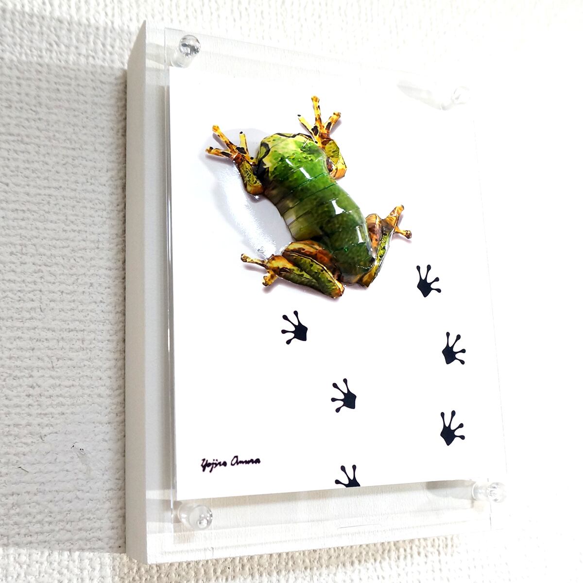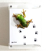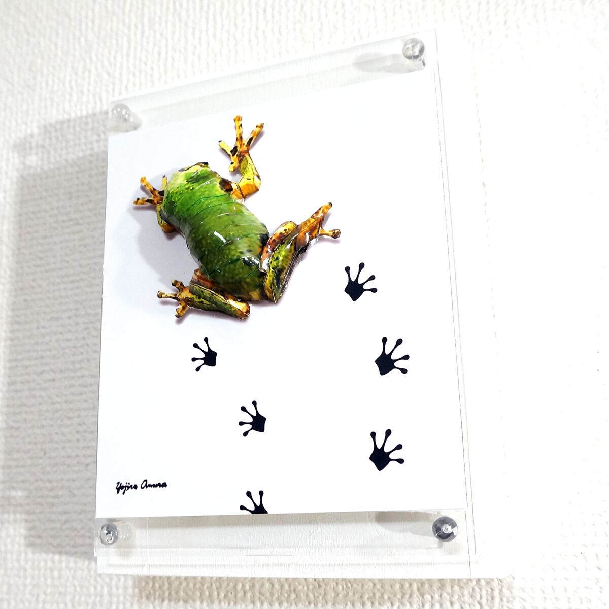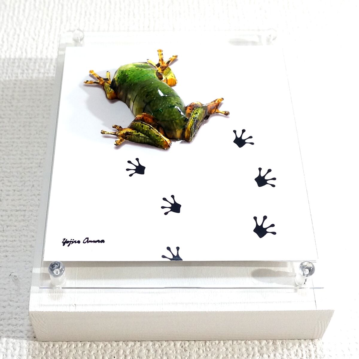 パネルの上を小さなアマガエルがペタペタと足跡を残しながら歩いている様子を表現いたしました。