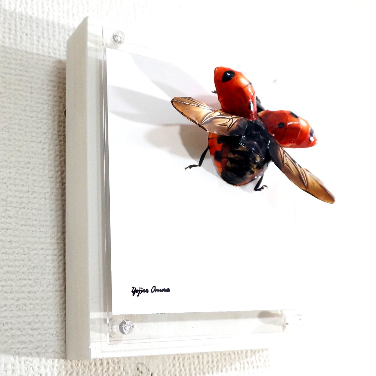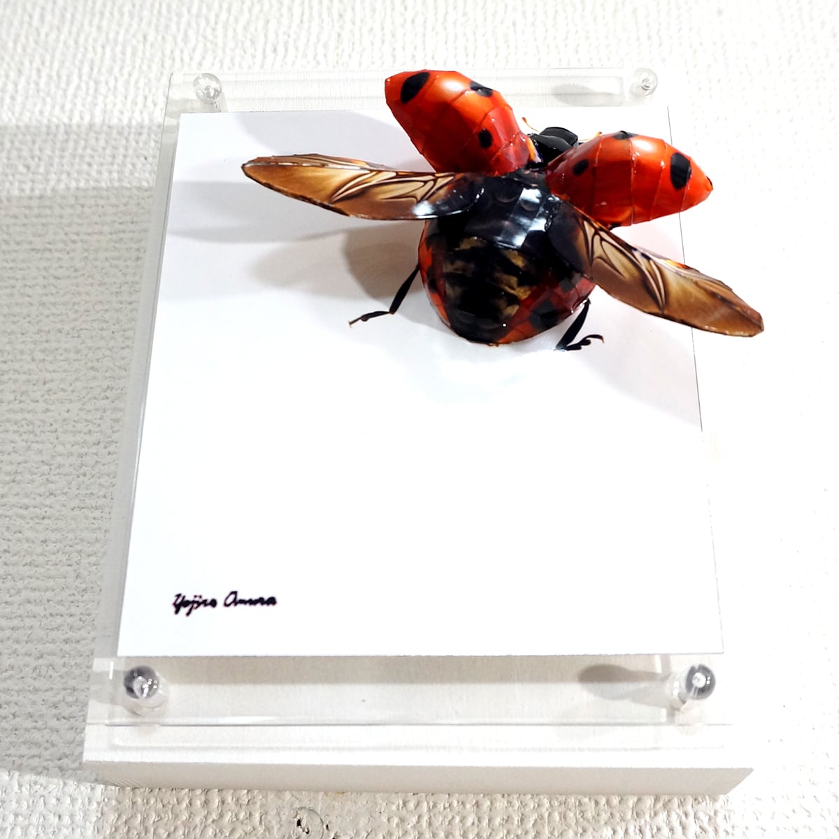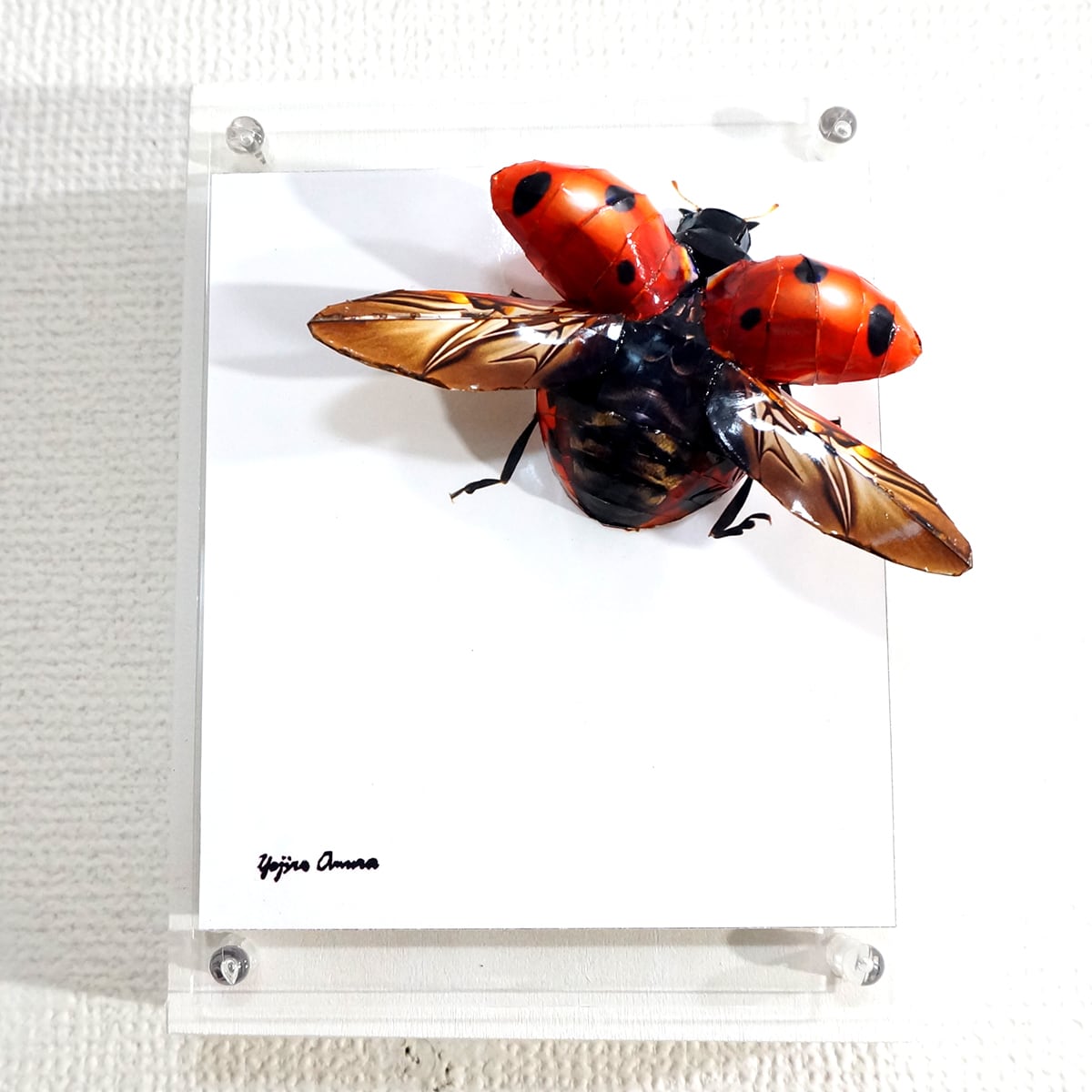 「テントウムシのコラージュ画像を作成しペーパークラフト技術を用いて立体的に表現した作品です。