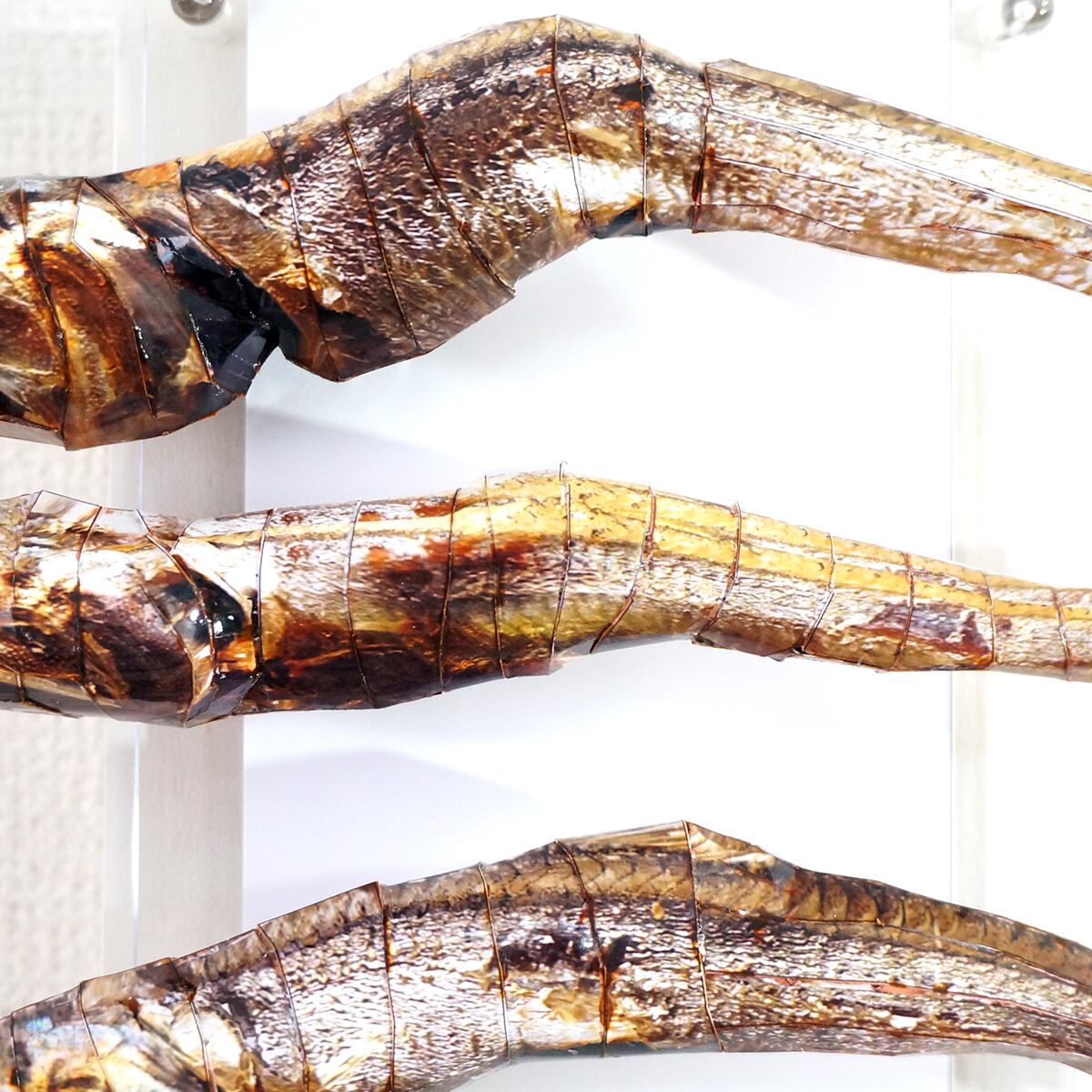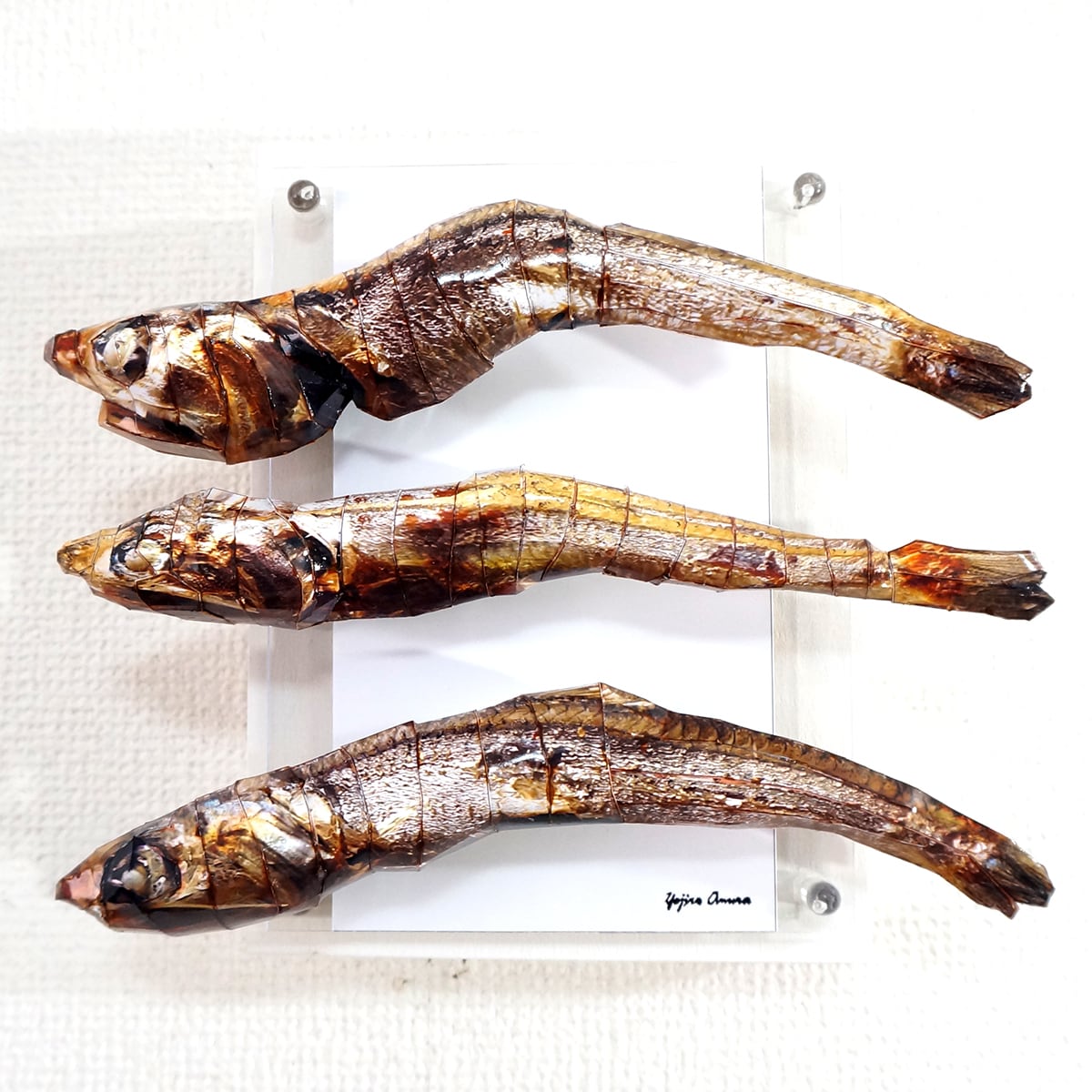 ひとつのパネルに3尾も制作することになるので非常に作業効率が悪く、苦労して完成したものが単なる煮干しなので腰が抜けそうになります。