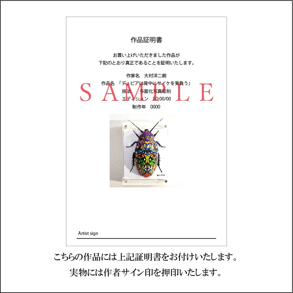 こちらの作品には作品証明書をお付けいたします。(画像参照)
