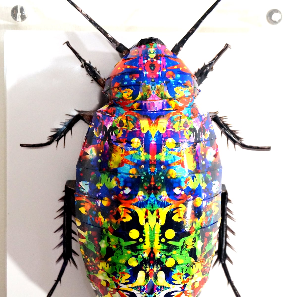 「デュビアのコラージュ画像を作成しペーパークラフト技術を用いて立体化した作品です。