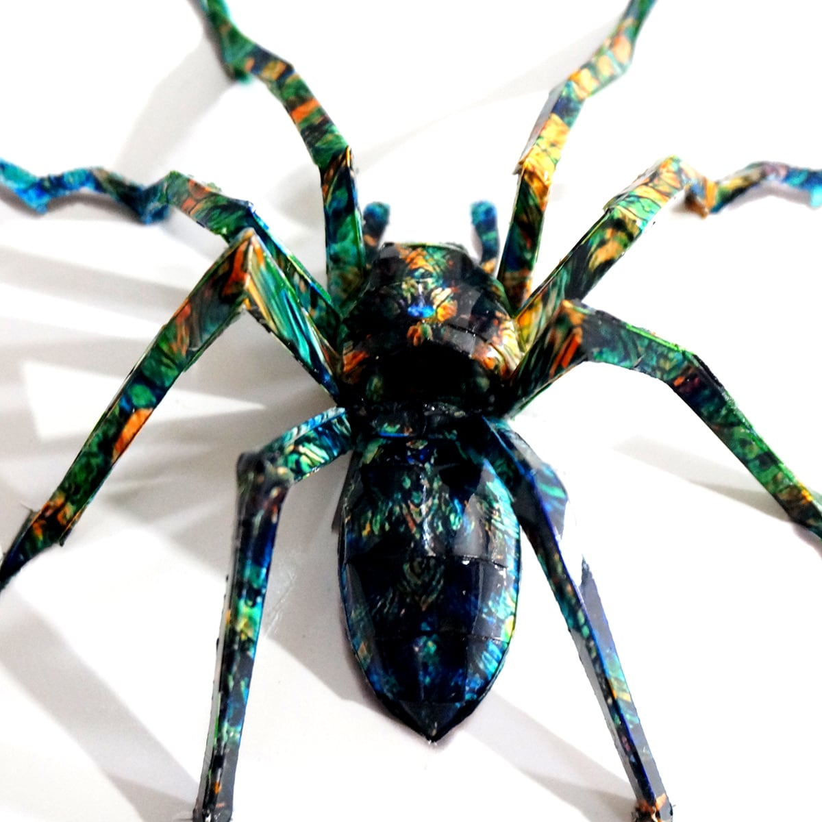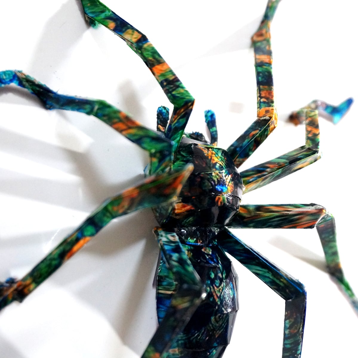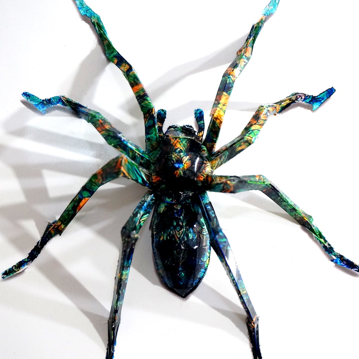 「ブラジリアンドクシマダラグモのコラージュ画像を作成しペーパークラフト技術を用いて立体的に表現した作品です。