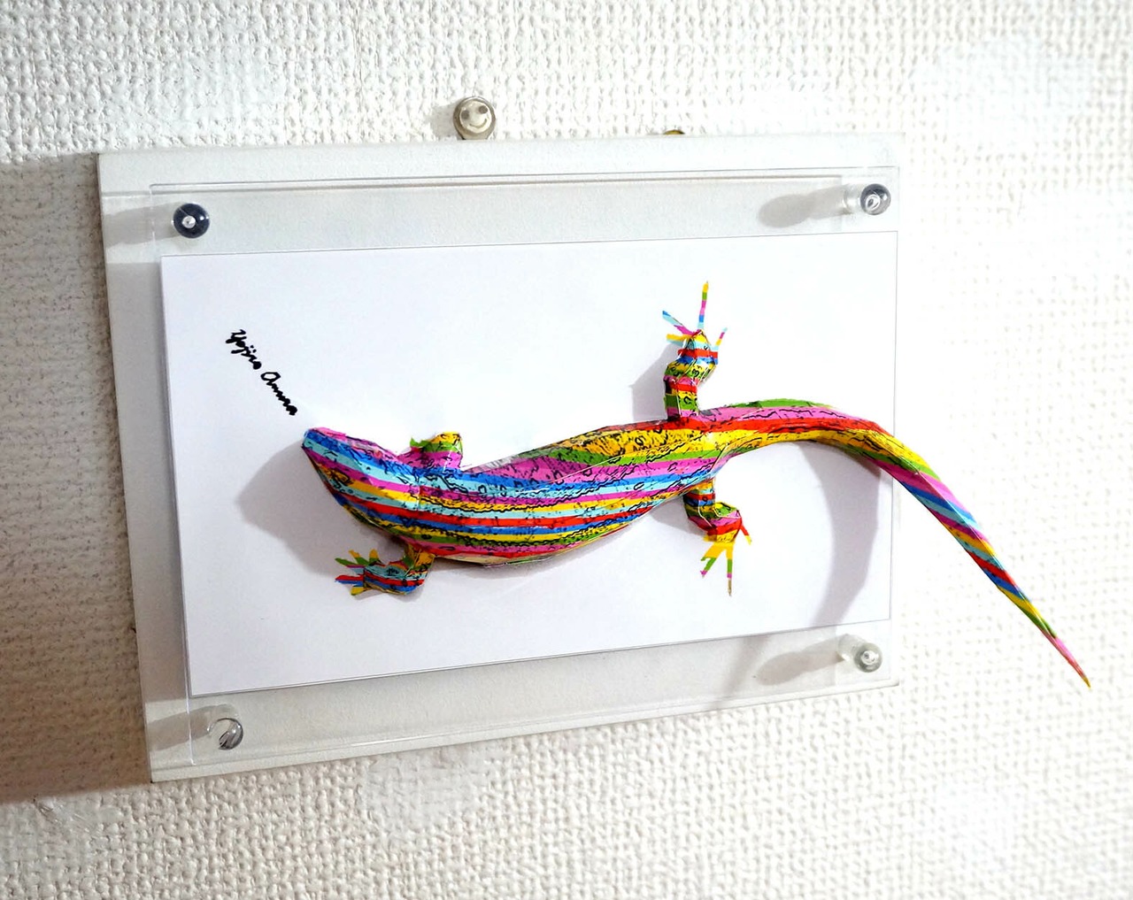 こちらの作品はトカゲが作者サインを狙っている様子をペーパークラフトで立体的に表現しております。