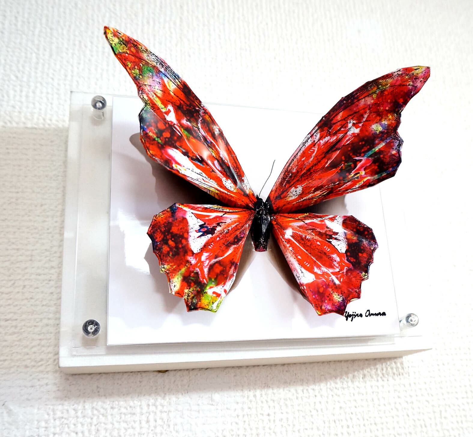 テクスチャ自体は花びらの集合体なのですが、放射線状に伸びる模様が蝶の造形とシンクロすることで、新たな美しさを生み出した作品です。