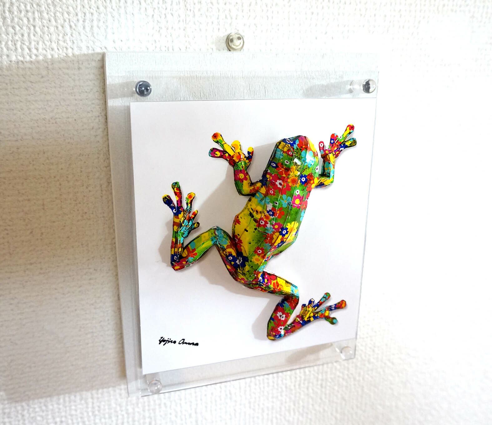これまで作成してきたカエルシリーズの中でもかなりポップなイメージで、現代美術的な要素を多く含んだ作品に仕上がりました。」