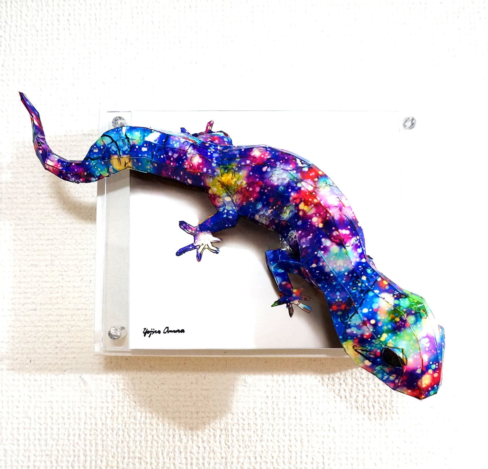 「こちらは写真を元にトカゲをペーパークラフト技術を用いて立体化した作品です。