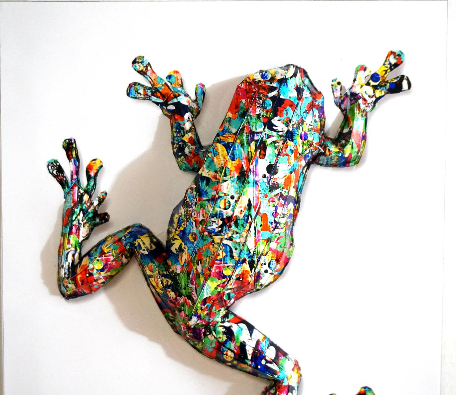実存はしない架空のカエルになりますが表面の模様がカエルの形状にマッチしており、本物がその場に居るような感覚になる作品に仕上がりました。」