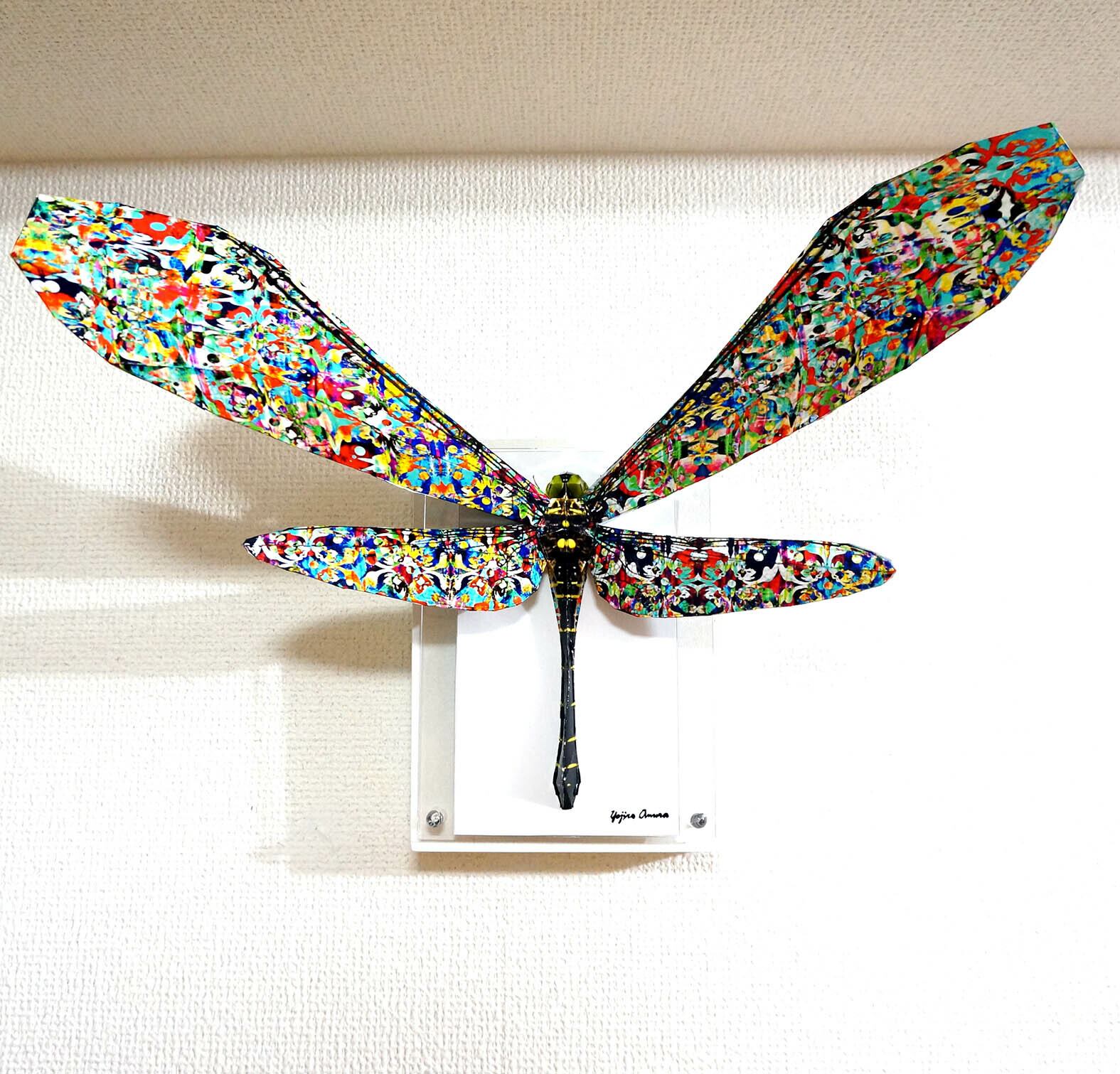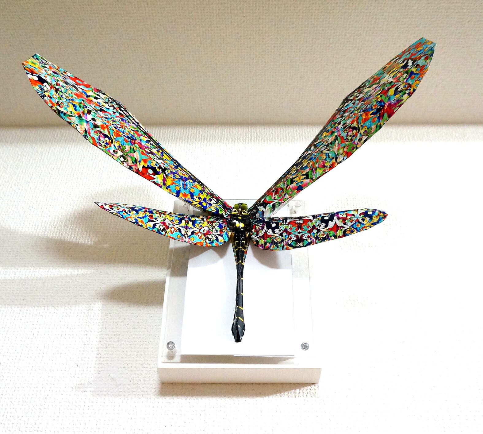 「こちらはペーパークラフト技術を用いトンボを立体的に表現した作品です。