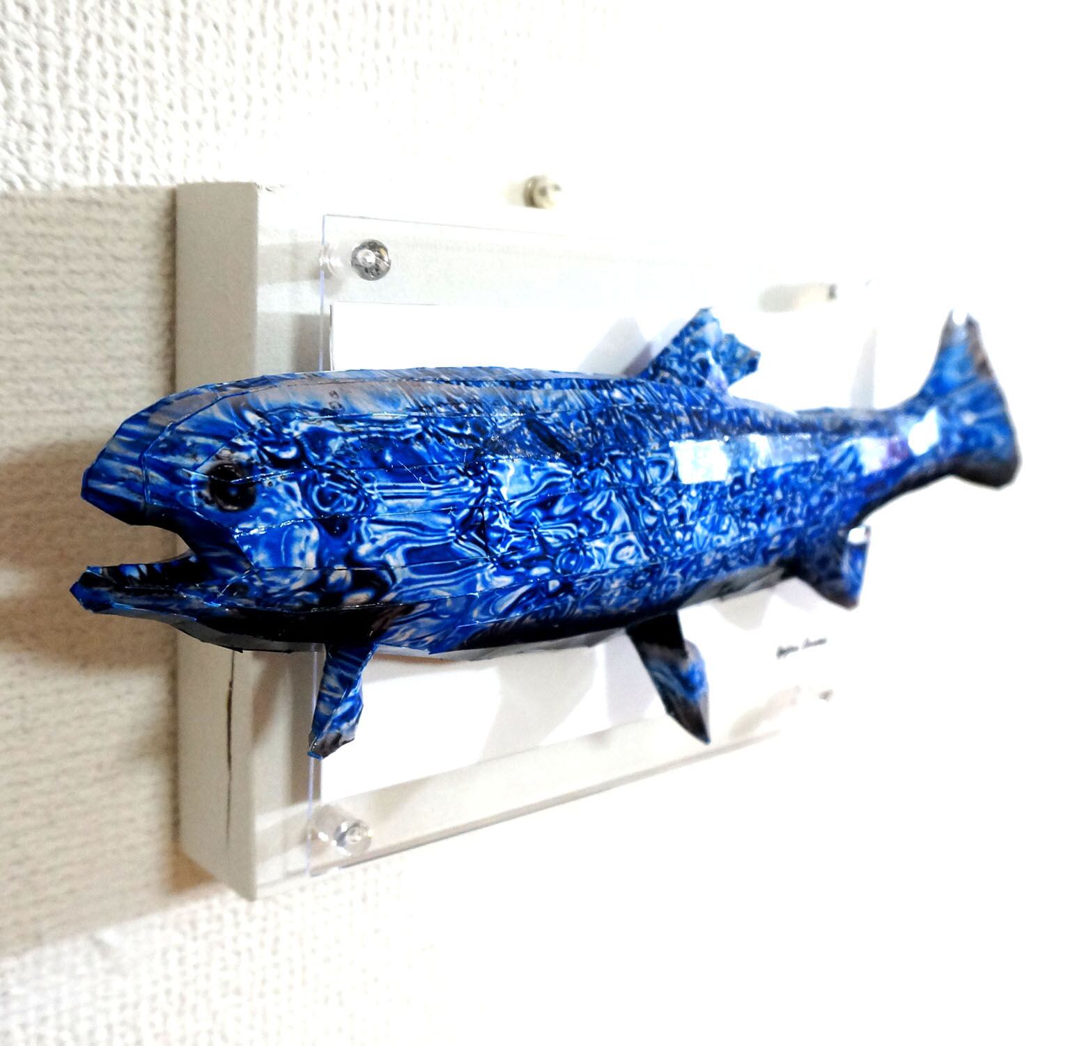 「こちらはニジマスをペーパークラフト技術を用いて表現した作品です。