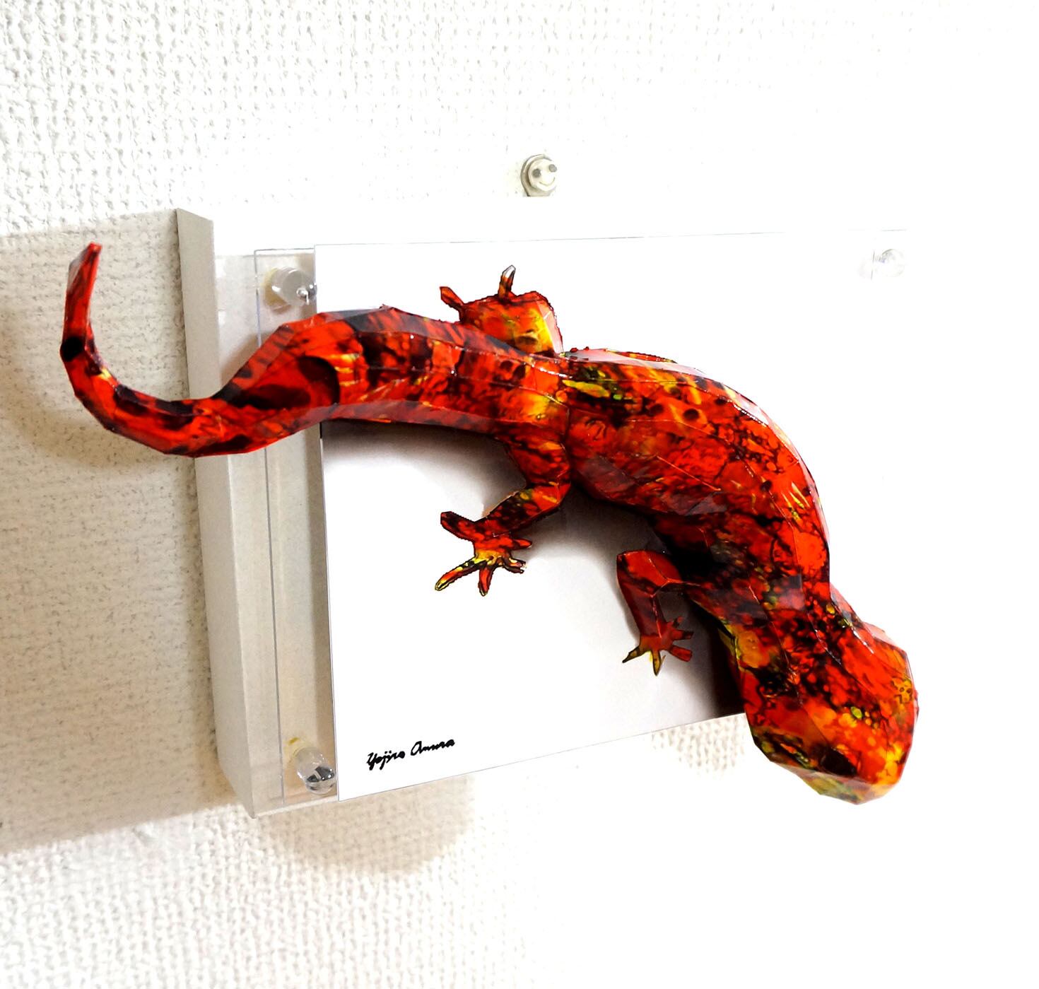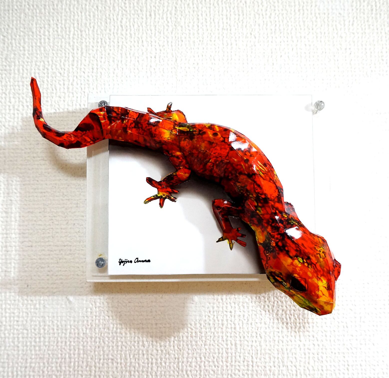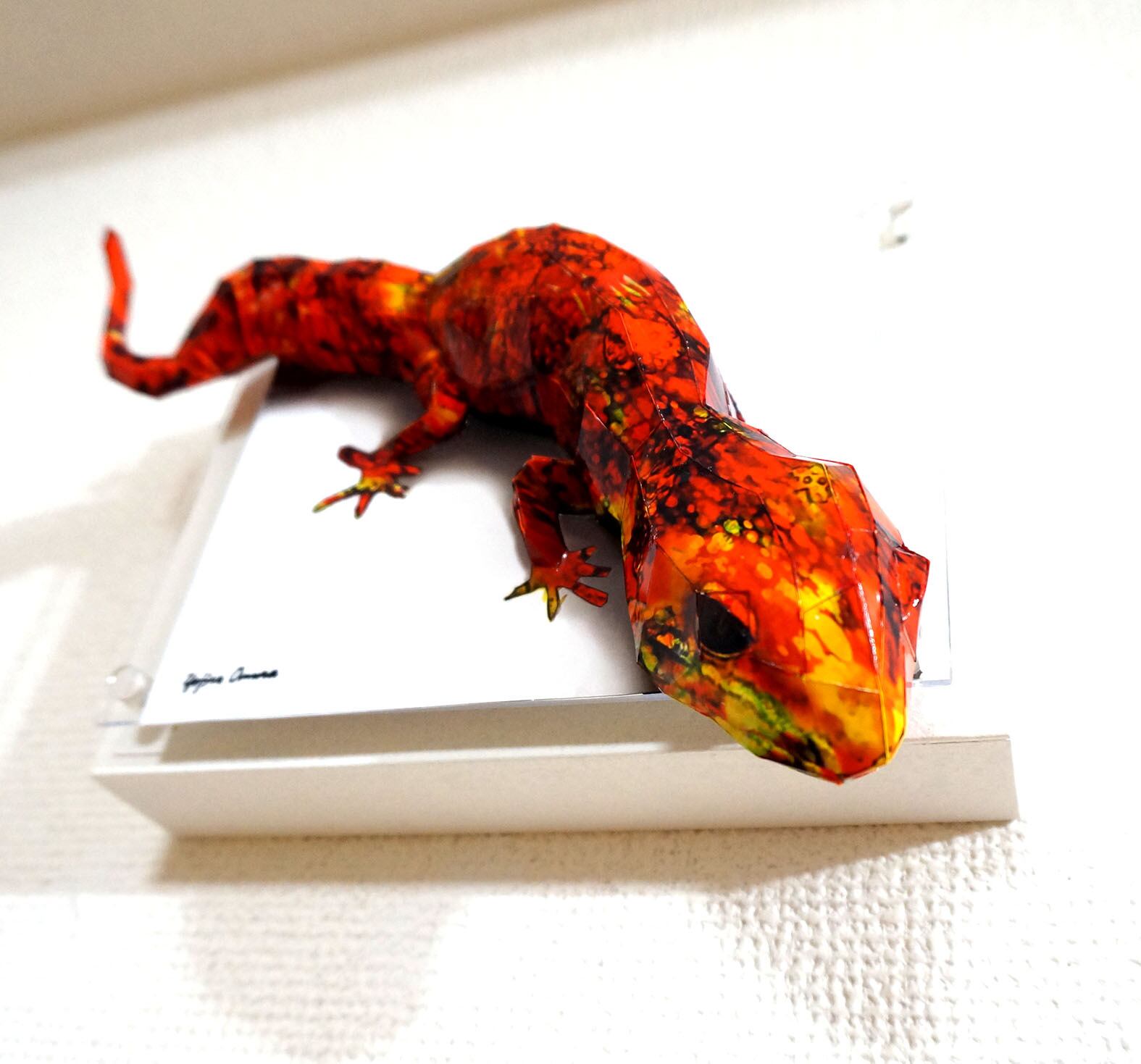 「こちらは写真を元にトカゲをペーパークラフト技術を用いて立体化した作品です。
