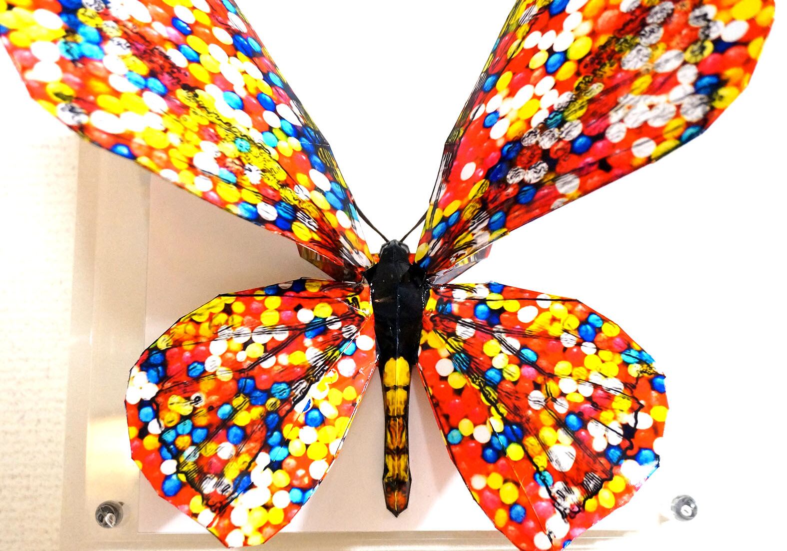 「こちらの作品はチョウチョの写真を元にペーパークラフト技術を用いて全体を立体化した作品です。
