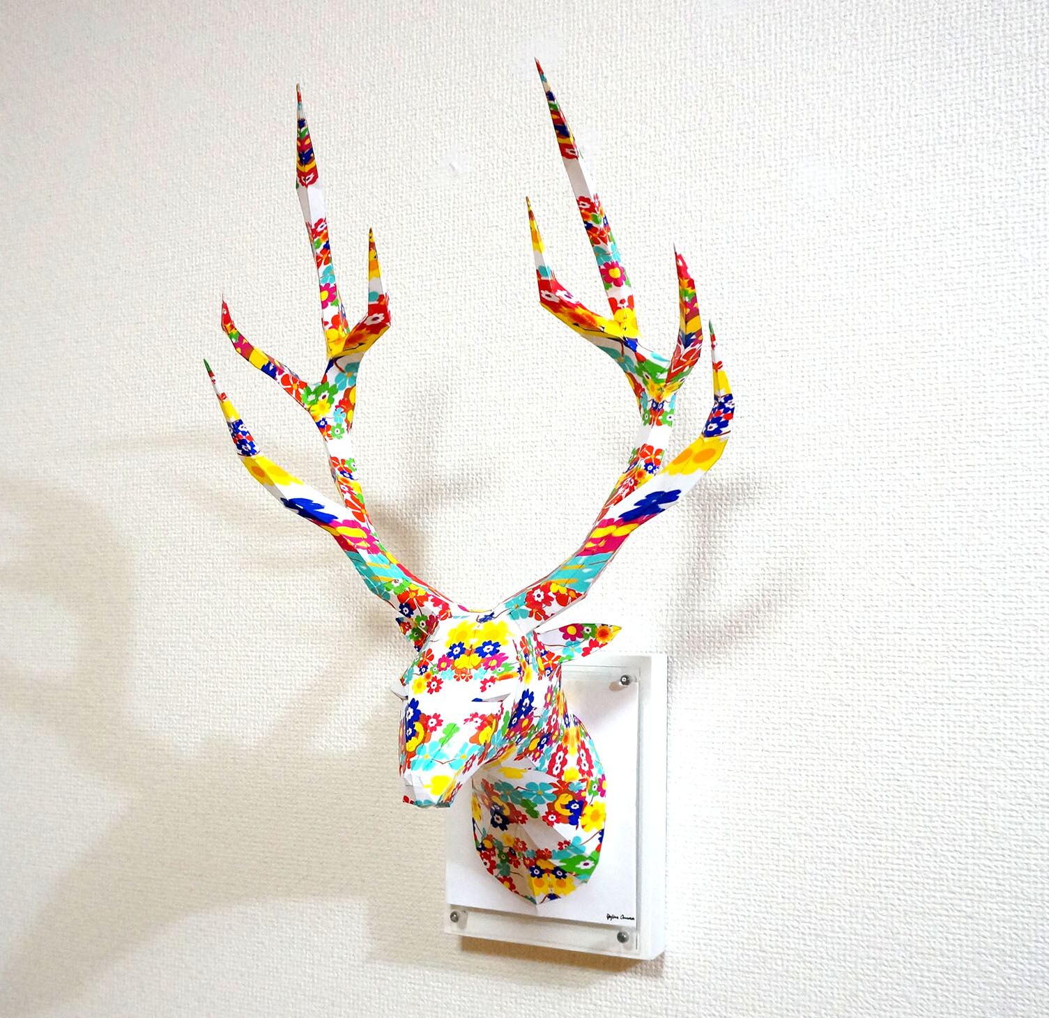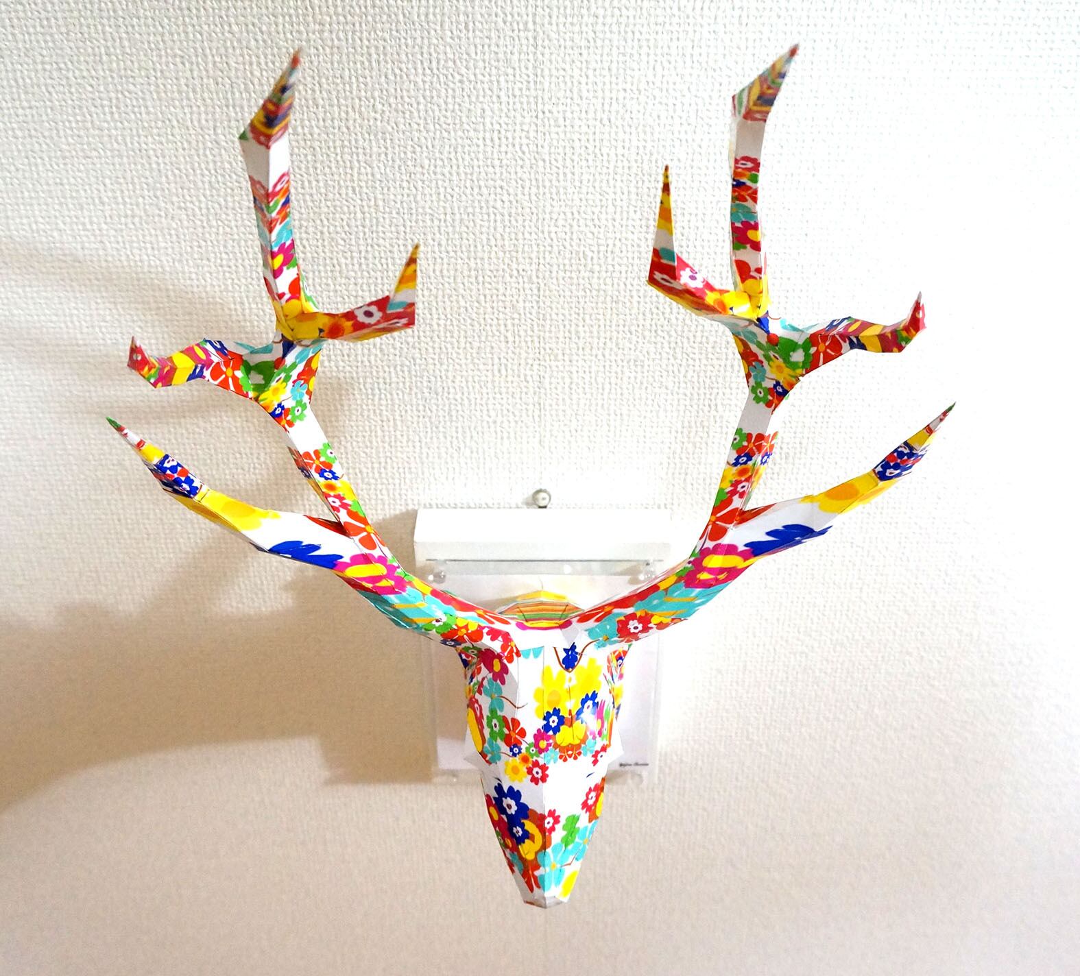 「ペーパークラフト技術を用いて制作した鹿のハンティングトロフィーになります。