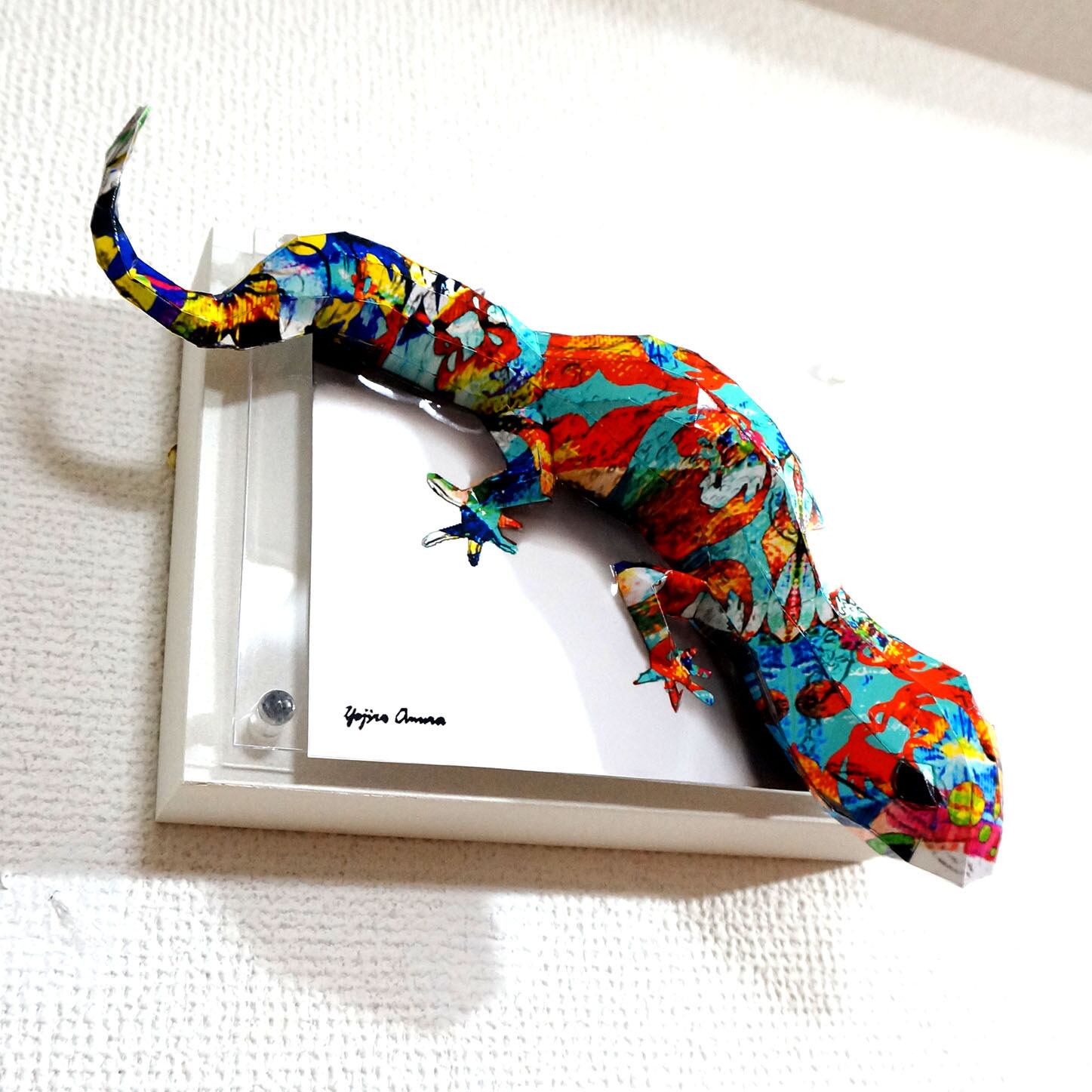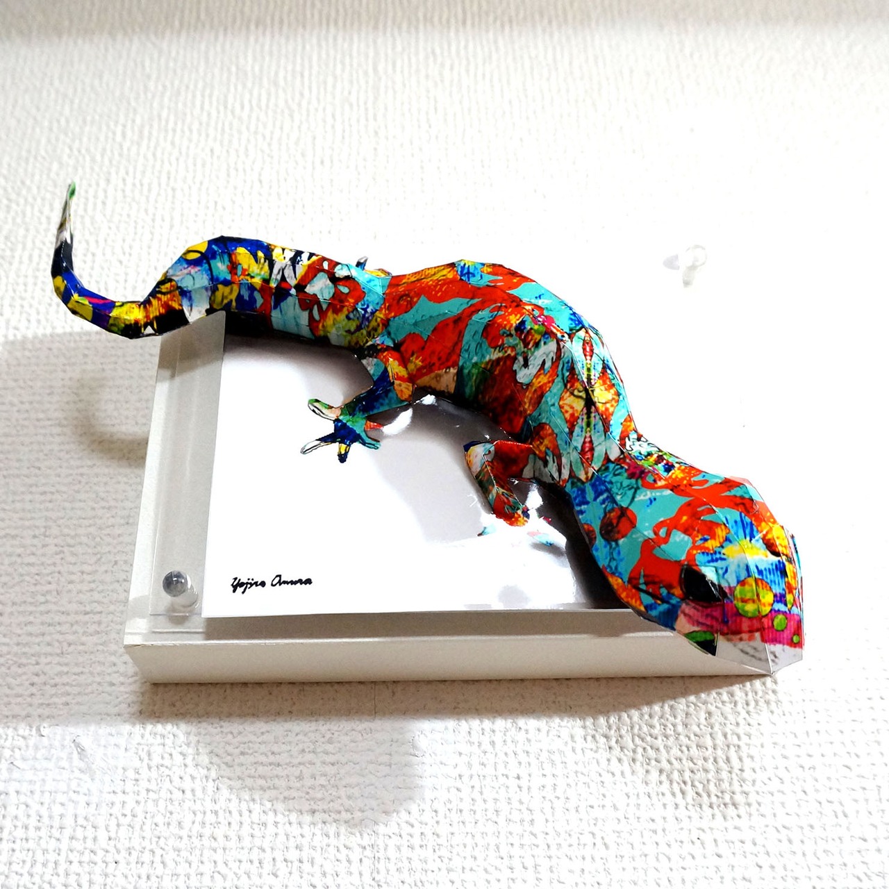 「こちらはトカゲの画像を元にペーパークラフト技術を用いて立体的に表現した作品になります。