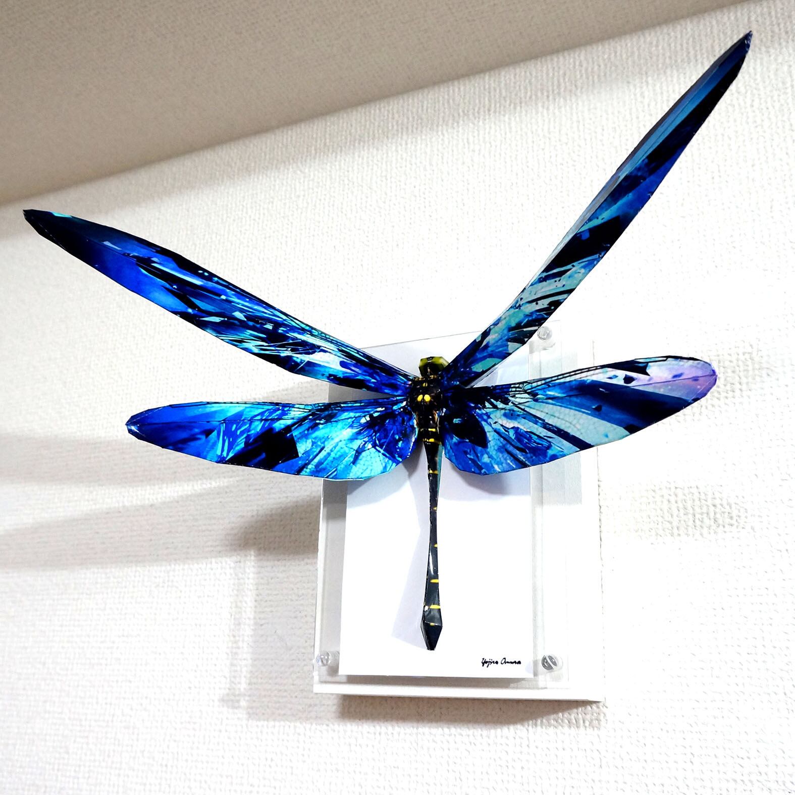 「こちらはトンボの画像を元にペーパークラフト技術を用いて立体的に表現した作品になります。
