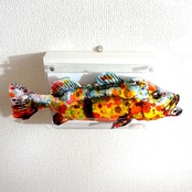 「こちらはピーコックバスの画像を元にペーパークラフト技術を用いて立体的に表現した作品になります。