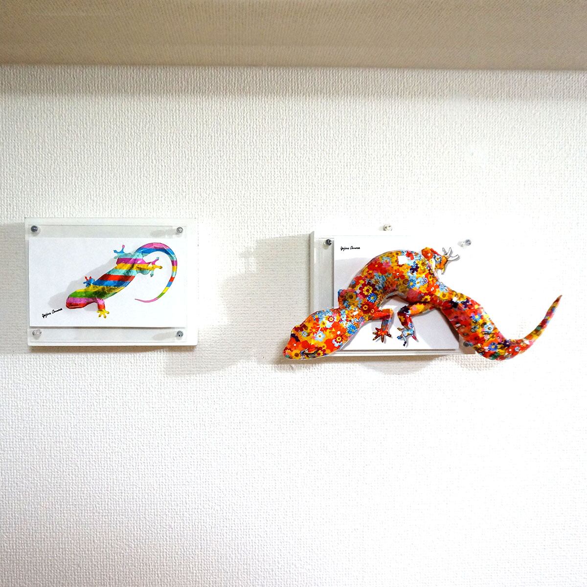 「こちらはトカゲの画像を元にペーパークラフト技術を用いて立体的に表現した作品になります。