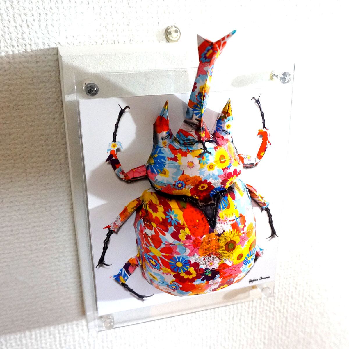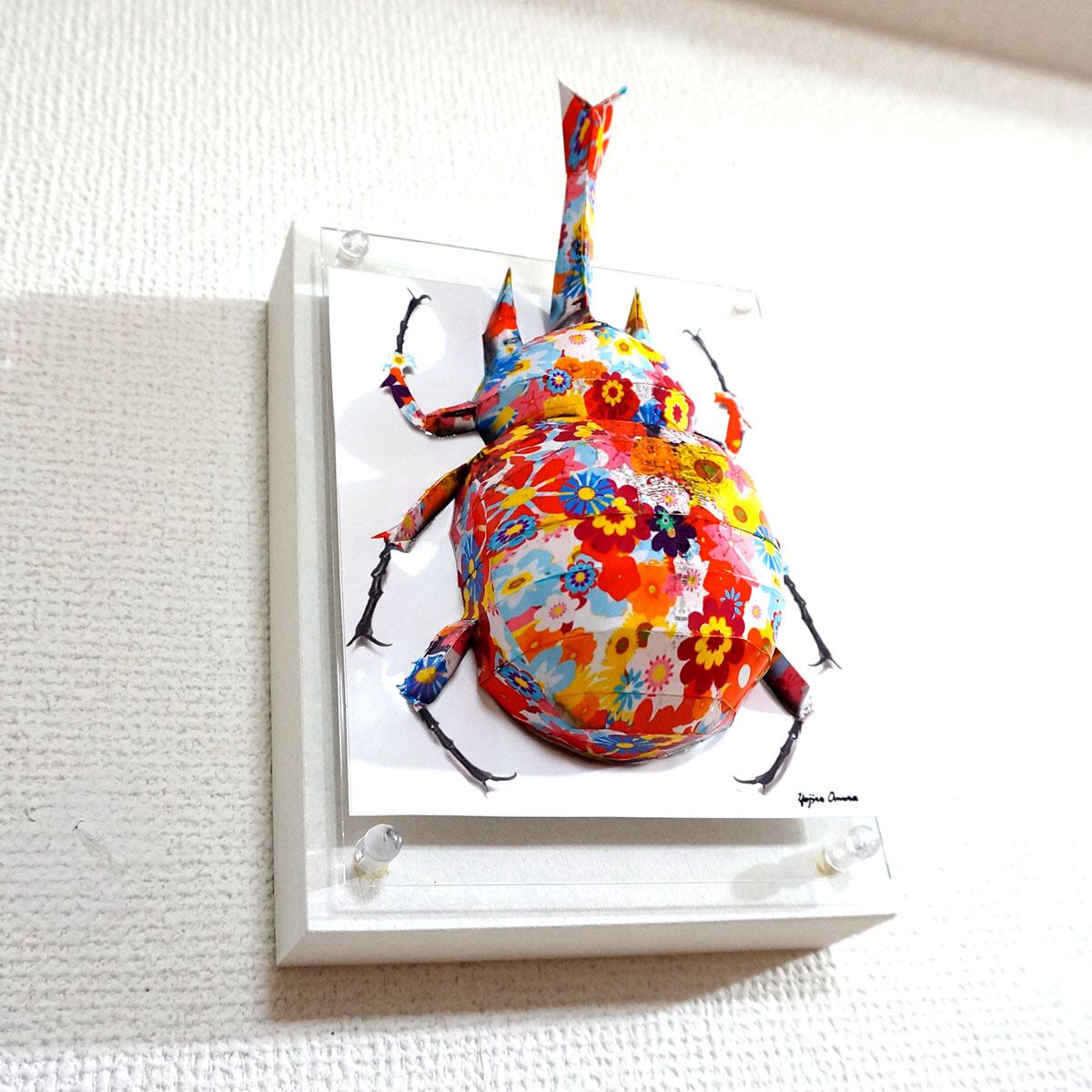 「こちらはペーパークラフト技術を用いゾウカブトムシを立体的に表現した作品です。