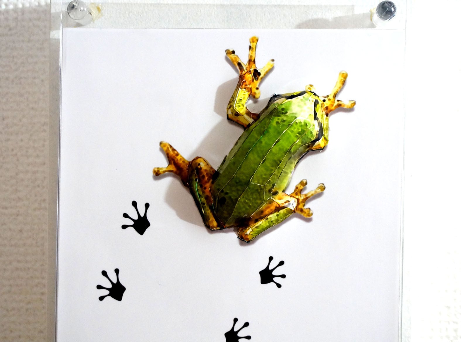「こちらはアマガエルの画像を元にペーパークラフト技術を用いて立体化した作品になります。