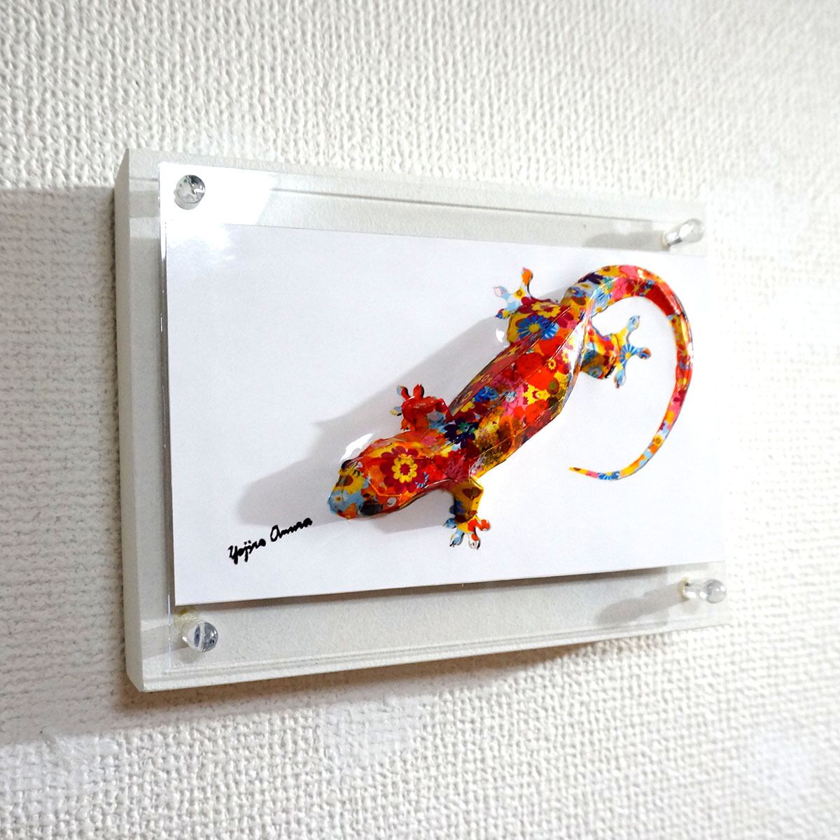 画像でもご覧いただけますように壁にぺたりと張り付いたデザインで、一見すると本物のトカゲが張り付いているように見えるように表現されています。