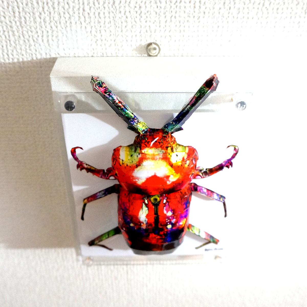 表面は赤を基調としたきらびやかな模様をクワガタ本来の表情に重ね合わせた光沢のあるサーフェイスとなっております。
