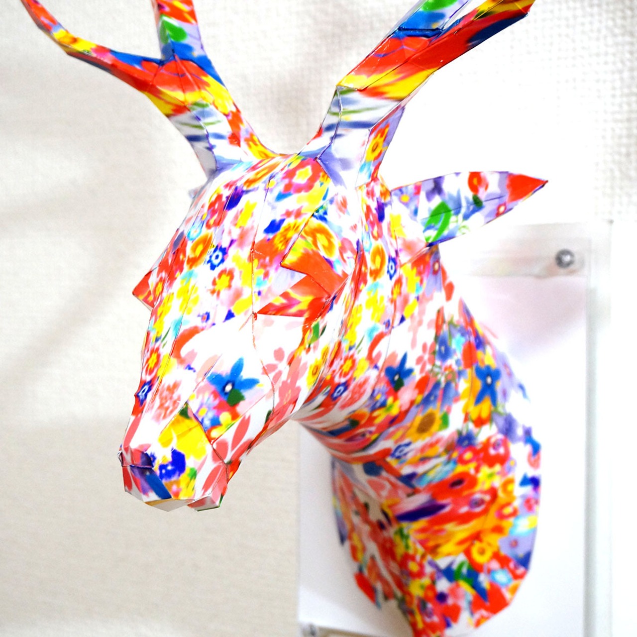 「ペーパークラフト技術を用いて制作した鹿のハンティングトロフィーになります。