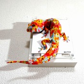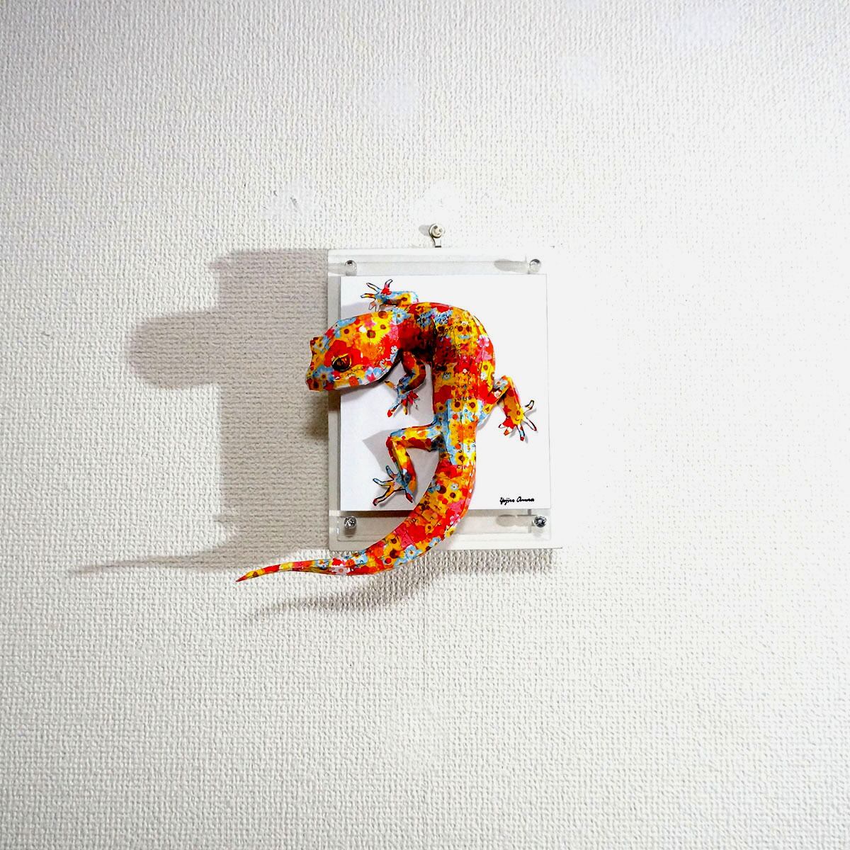 「こちらはトカゲの画像を元にペーパークラフト技術を用いて立体化した多面化写真彫刻作品になります。
