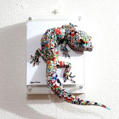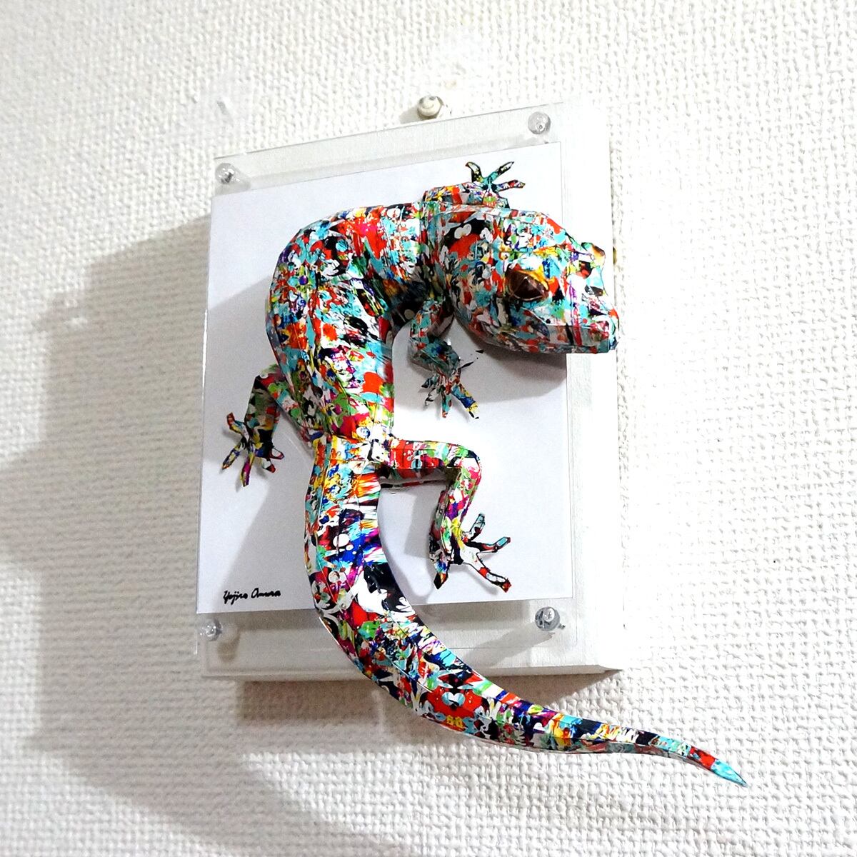 「こちらはトカゲの画像を元にペーパークラフト技術を用いて立体的に表現した作品になります。