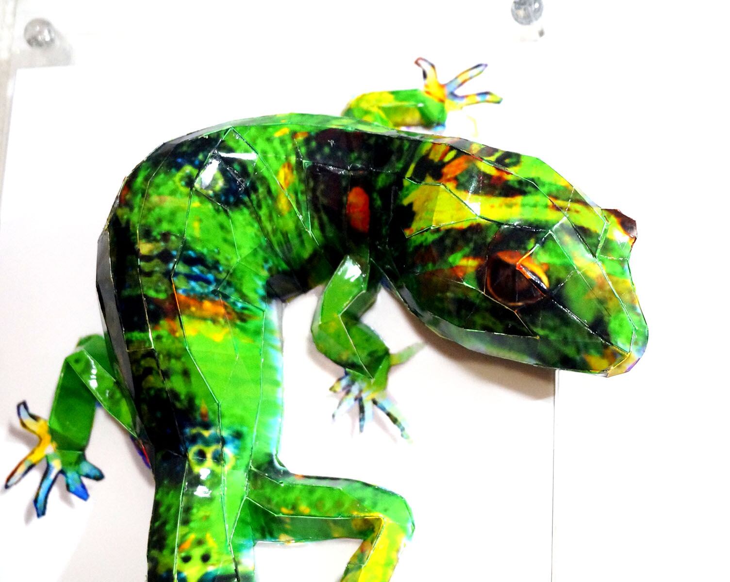 「こちらはトカゲの画像を元にペーパークラフト技術を用いて立体的に表現した作品です。