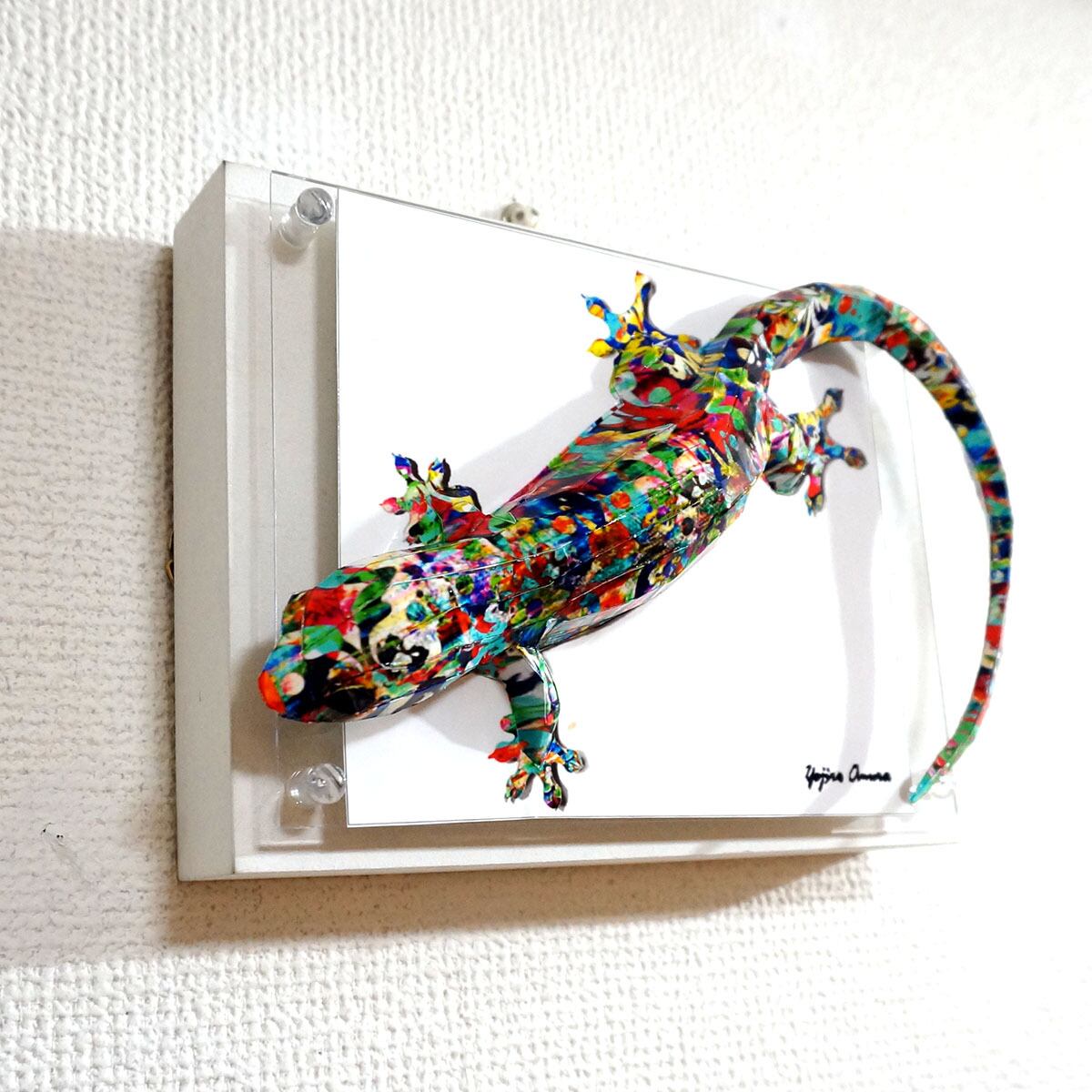 「こちらはトカゲの画像を元にペーパークラフト技術を用いて立体的に表現した作品になります。