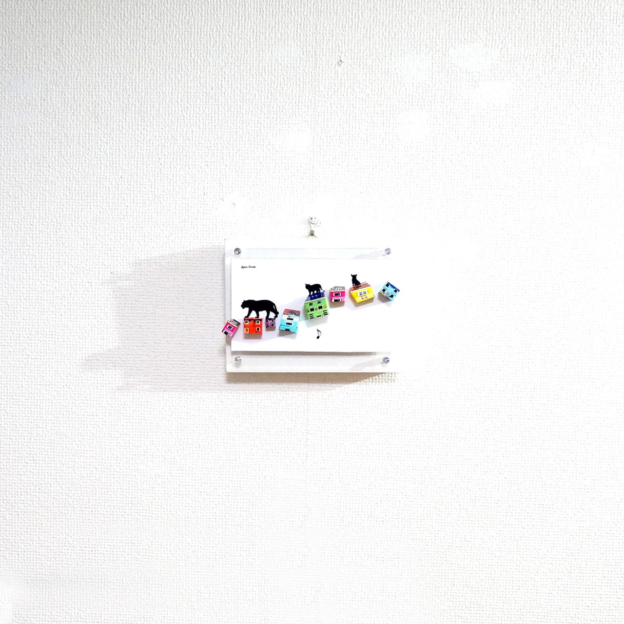 トラと音符の部分を平面に残し、家を手前に立体化しております。