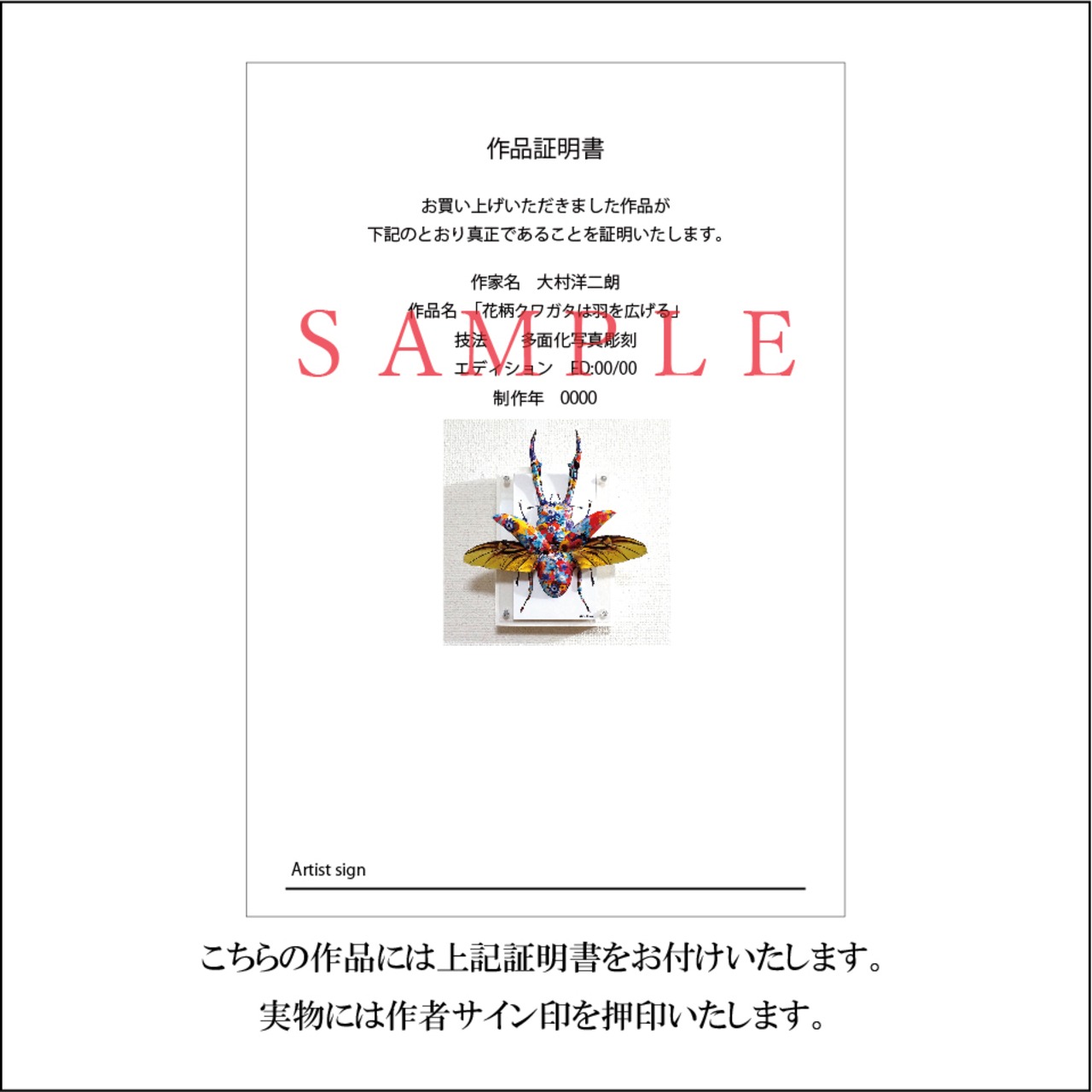 こちらの作品には作品証明書を付け添えております。