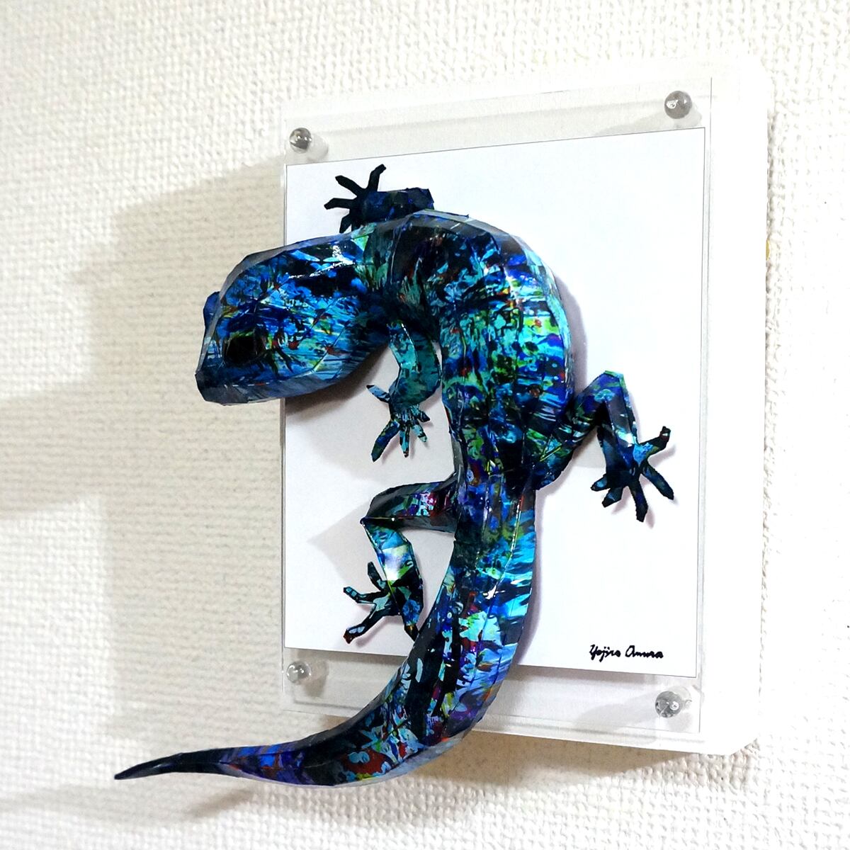 「こちらはトカゲの画像を元にペーパークラフト技術を用いて立体化した作品です。
