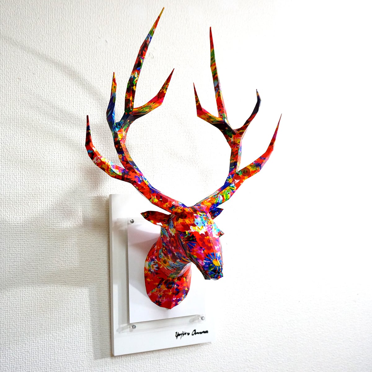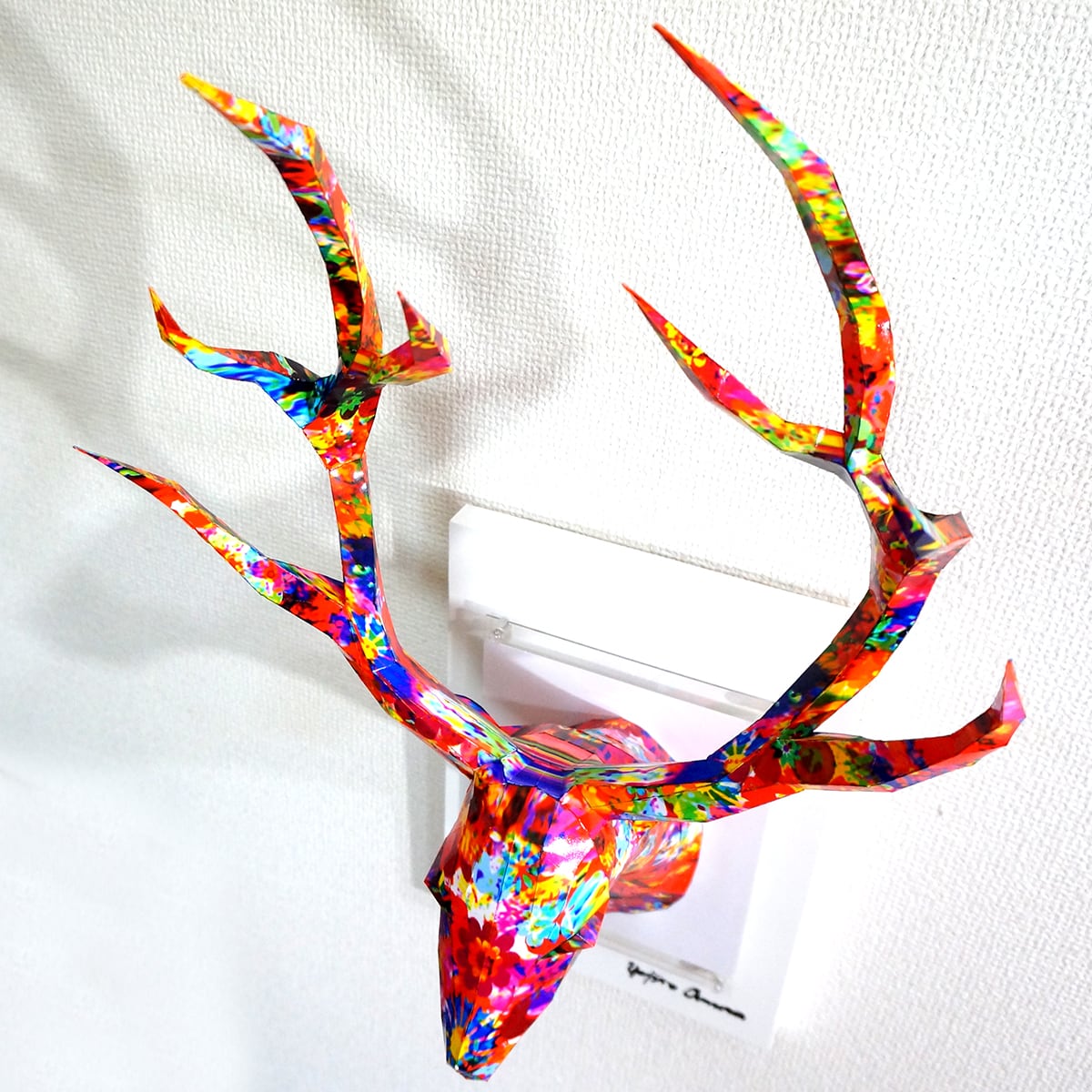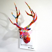 カラフルな色合いが目を引くとてもポップな印象のハンティングトロフィーです。
