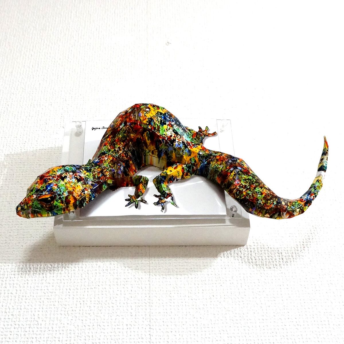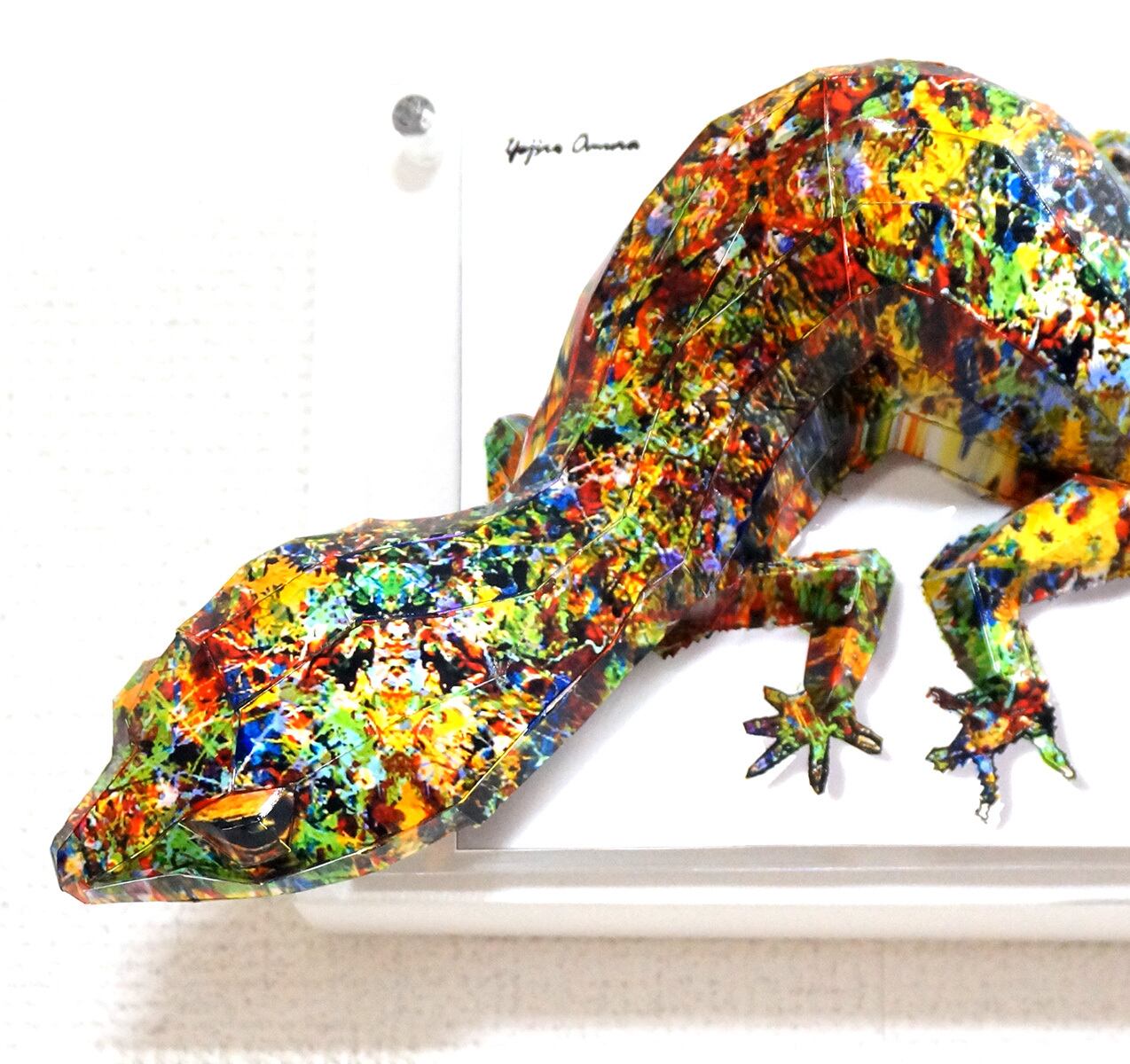 「こちらはトカゲの画像を元にペーパークラフト技術を用いて立体的に表現した作品です。