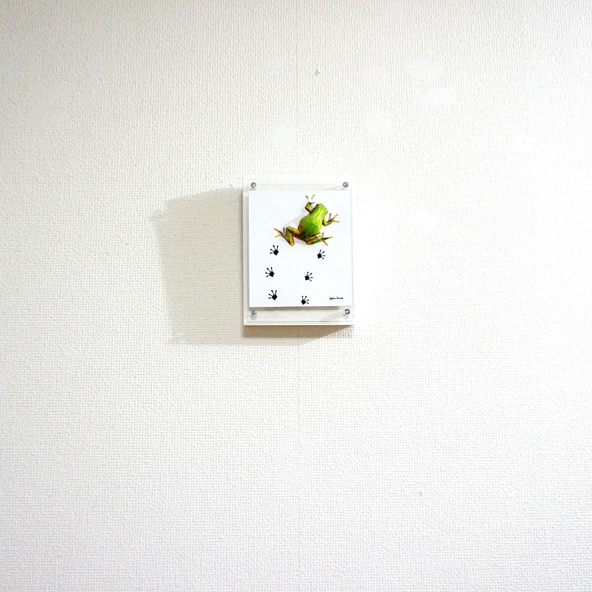パネルの上を小さなアマガエルがペタペタと足跡を残しながら歩いている様子を表現いたしました。