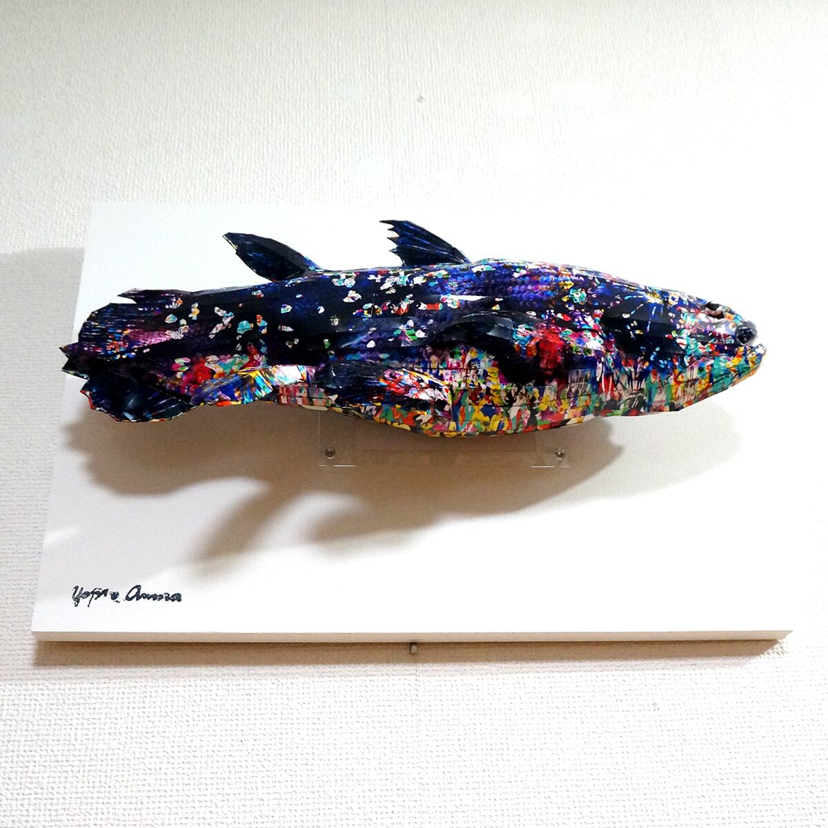 インパクトのある模様の大型シーラカンスがぼんやり空中を漂う様がミスマッチとなり、かわいらしさも感じられる不思議な作品となりました。」