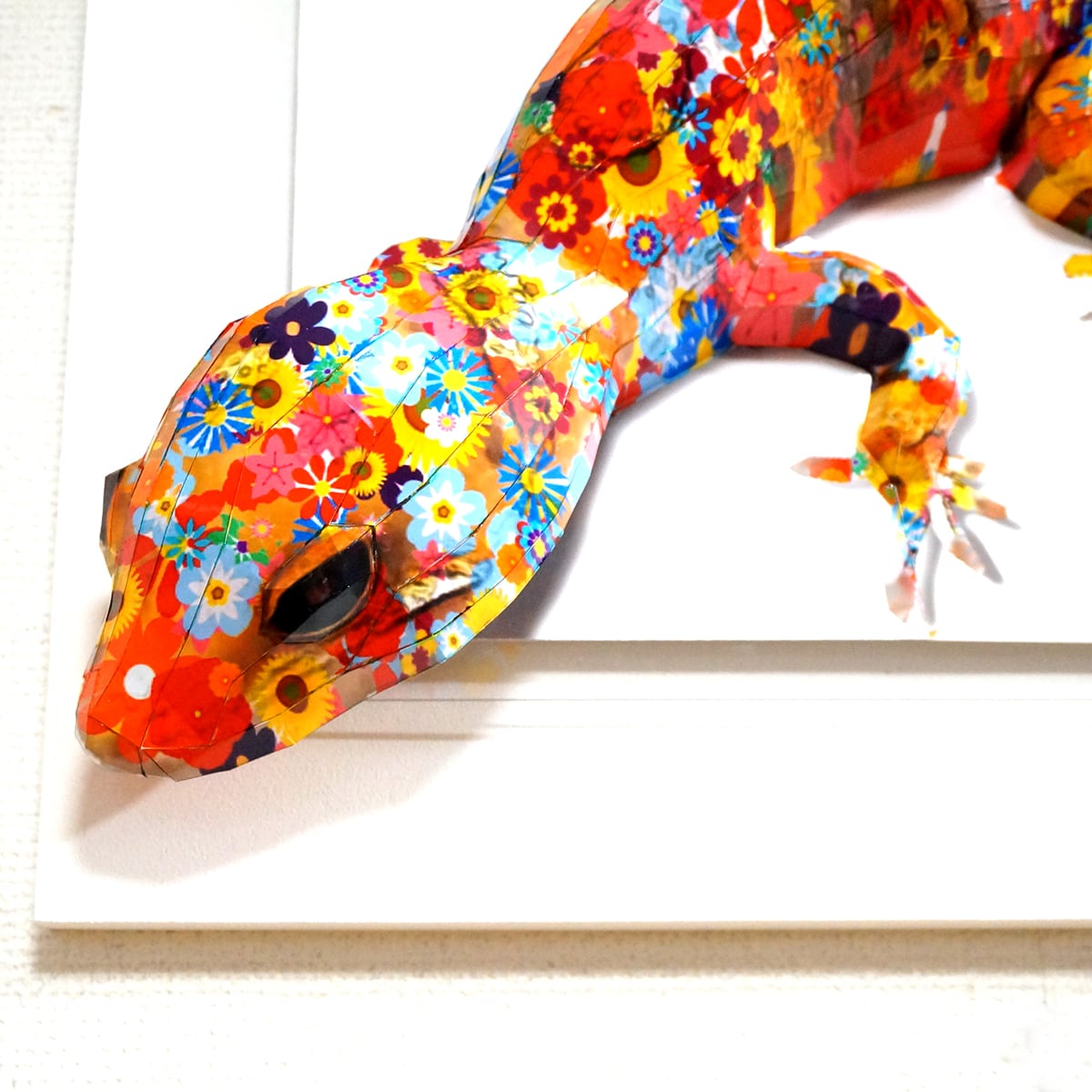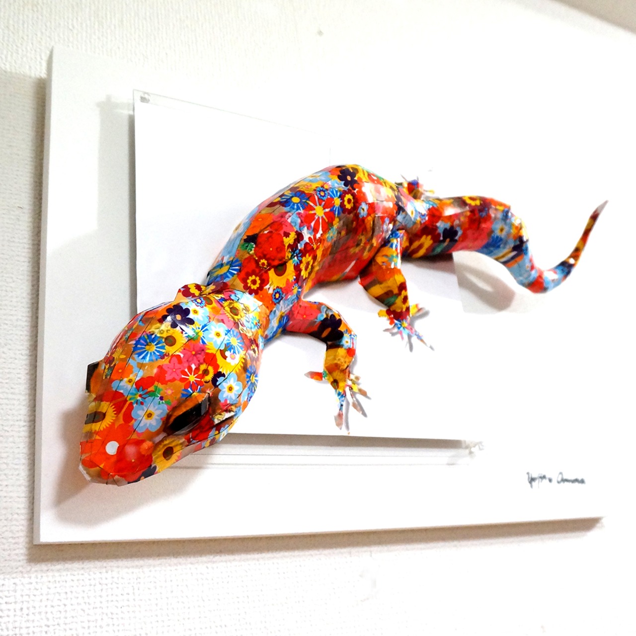 「こちらはトカゲの画像を元にペーパークラフト技術を用いて立体的に表現した作品です。