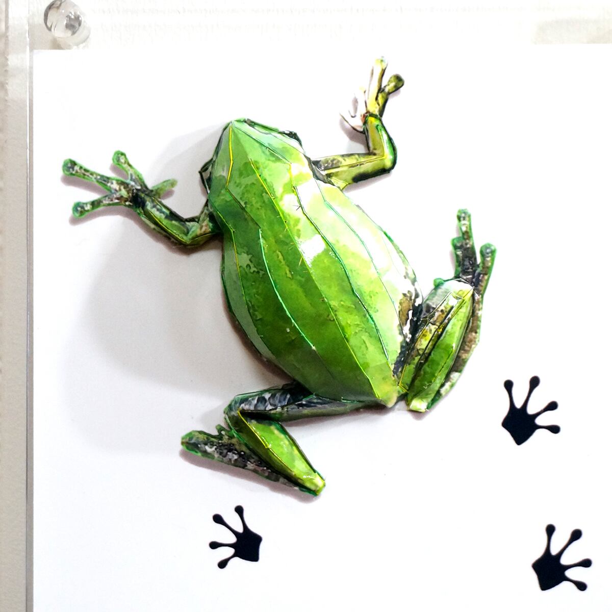 パネルの上を小さなアマガエルがペタペタと足跡を残しながら歩いている様子を表現いたしました。