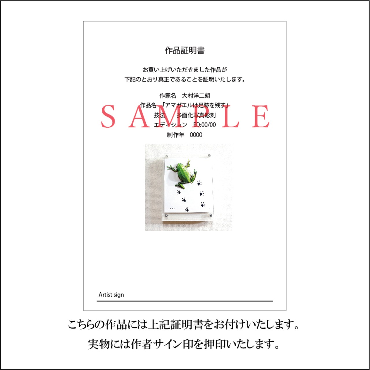 こちらの作品には作品証明書をお付けいたします。(画像参照)