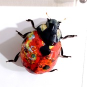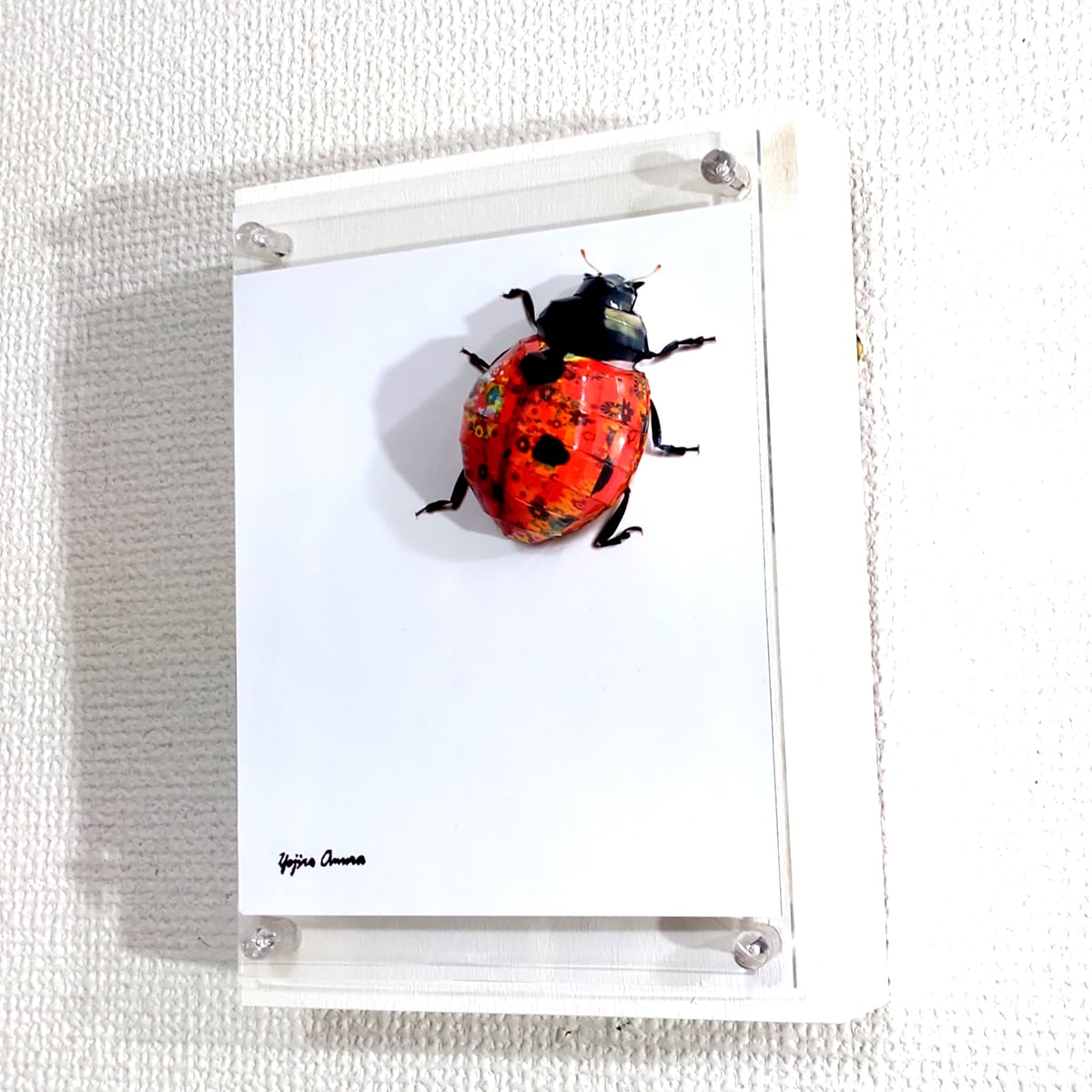 「テントウムシのコラージュ画像を作成しペーパークラフト技術を用いて立体的に表現した作品です。