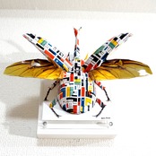 この作品にはカブトムシの風合いは入れておらずコンポジションパターンだけで構成されております。これまでのカブトムシシリーズとは違うミニマルな印象を感じる作品となりました。」