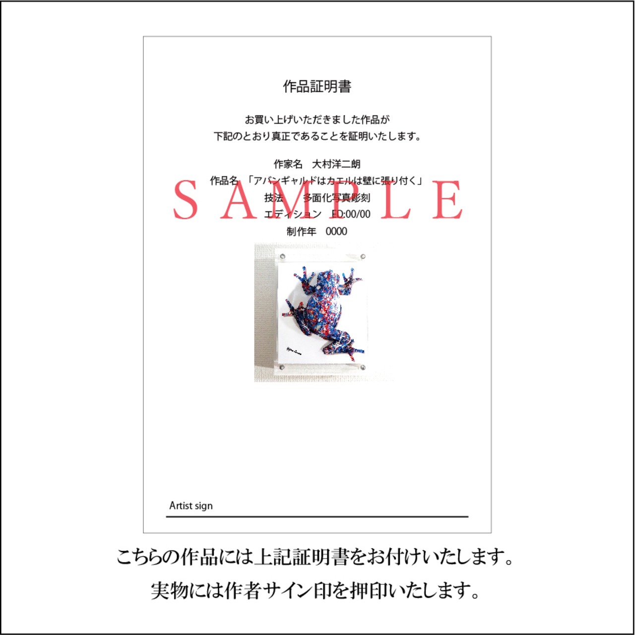 こちらの作品には作品証明書をお付けいたします。
