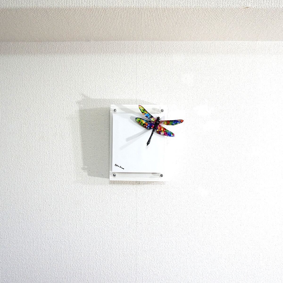 煌びやかなトンボがパネルの隅っこにふわりと着地した様子を表現いたしました。