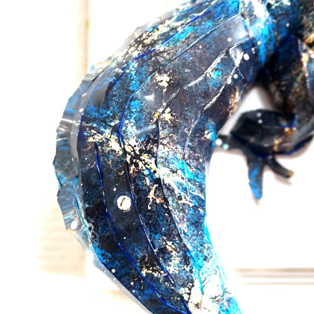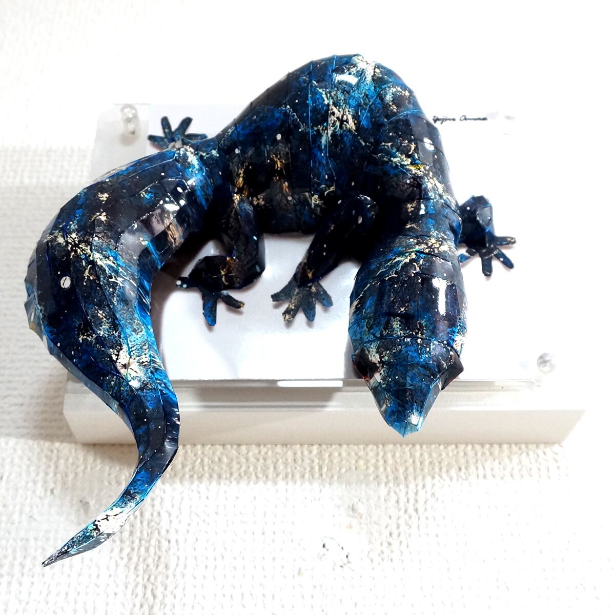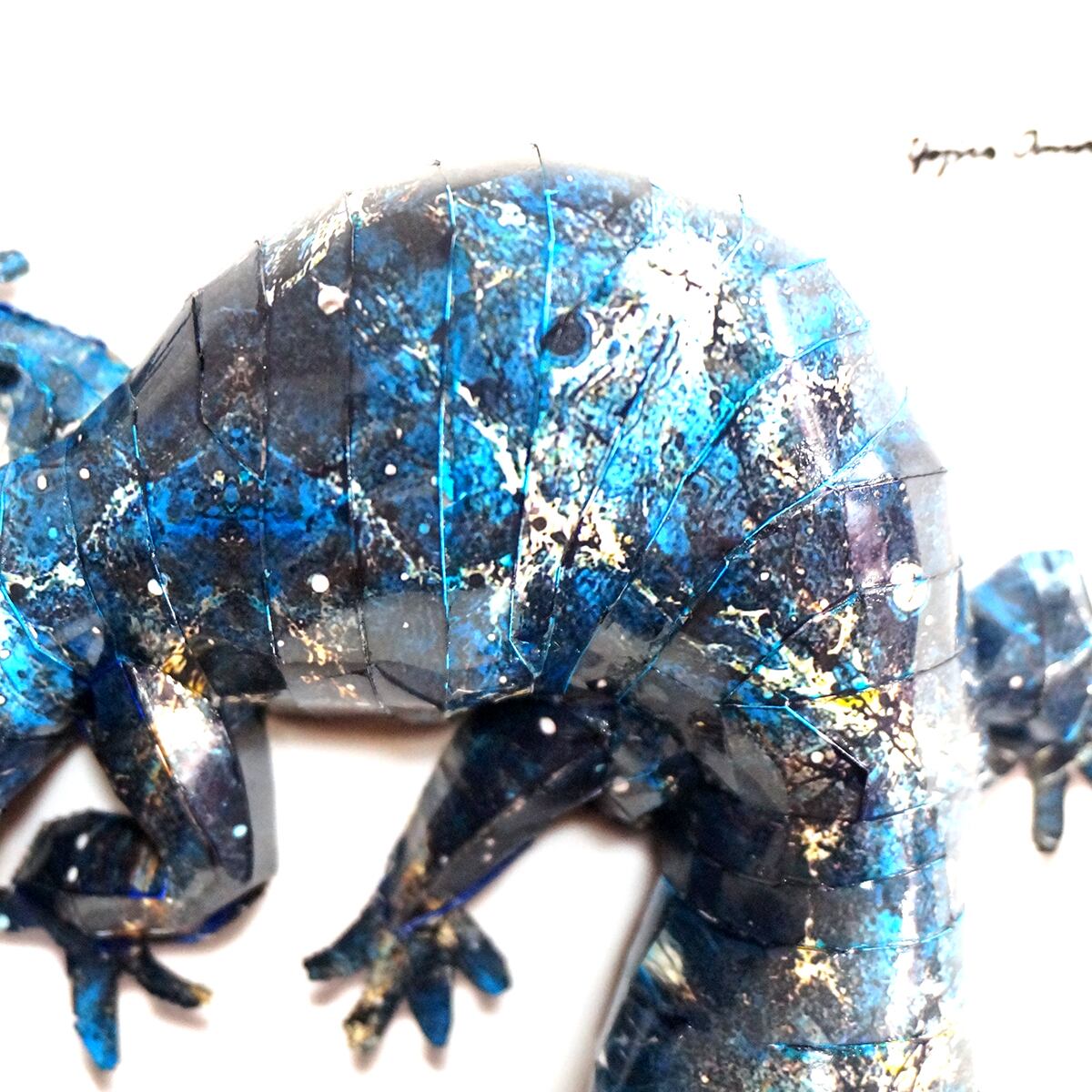 宇宙空間に広がる星空をイメージした模様をトカゲ本来の表情と重ね合わせたデザインです、表面上は光沢紙の艶のある質感となっております。
