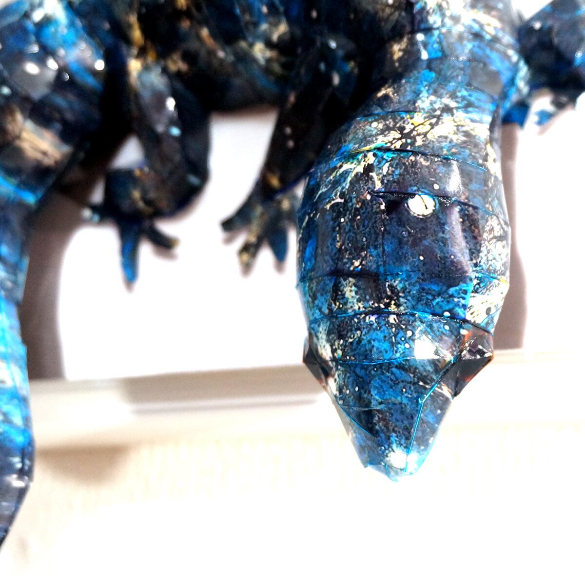 「こちらはトカゲのコラージュ画像を元にペーパークラフト技術を用いて立体的に表現した作品です。