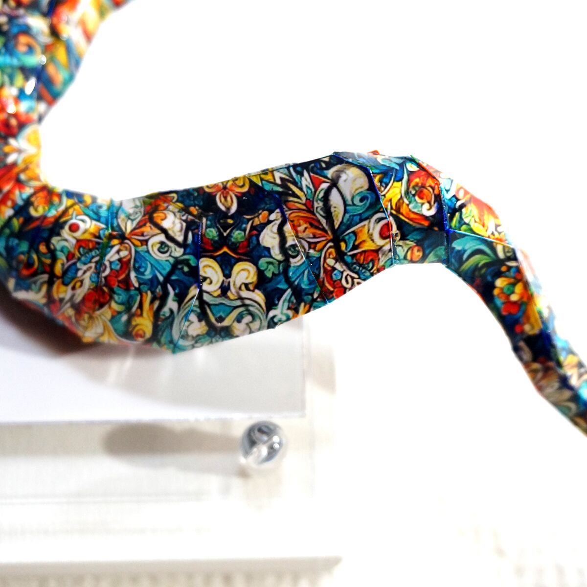「トカゲのコラージュ画像を元にペーパークラフト技術を用いて立体的に表現した作品です。
