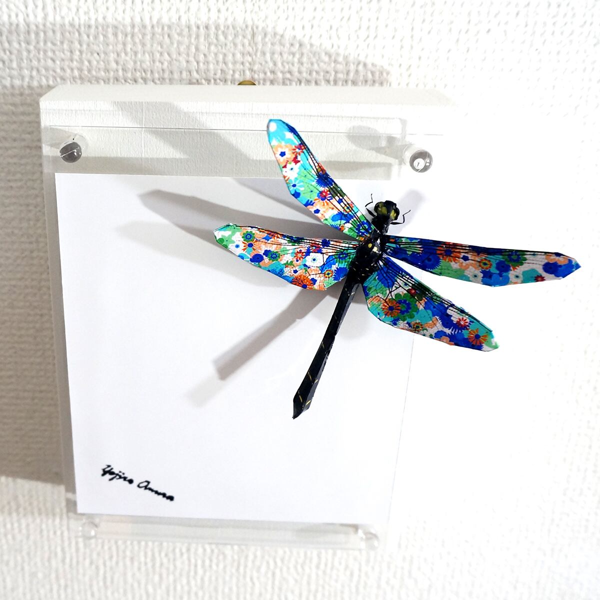 青を基調とした花柄のトンボがパネルの隅っこにふわりと着地した様子を表現いたしました。